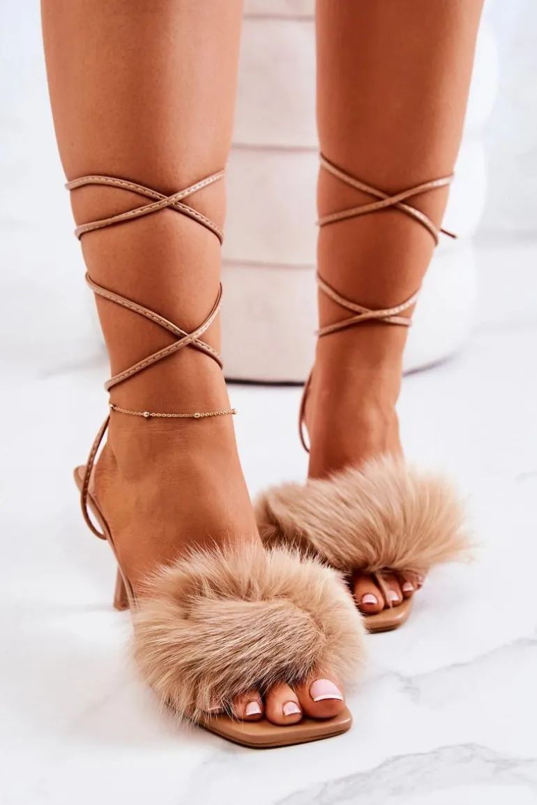 Sandały Na Szpilce Z Futerkiem Beżowe Lindsay