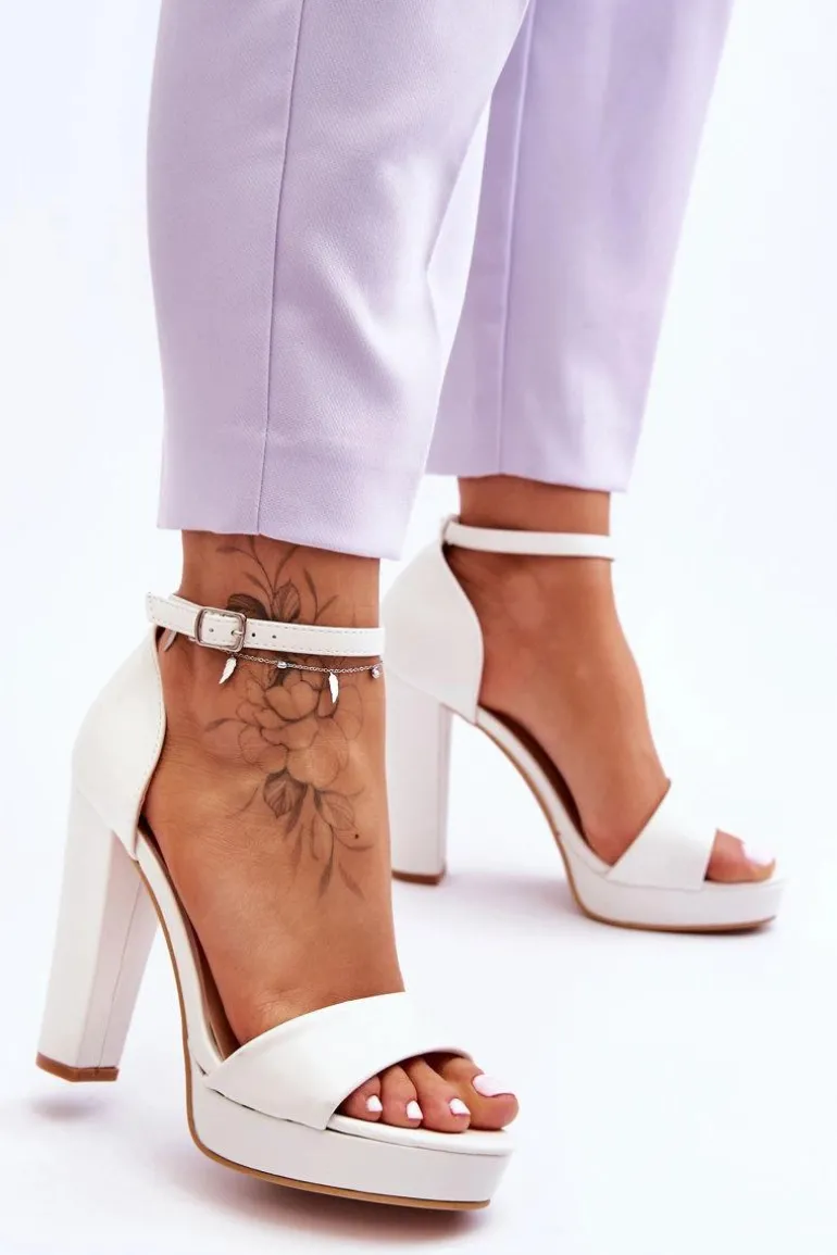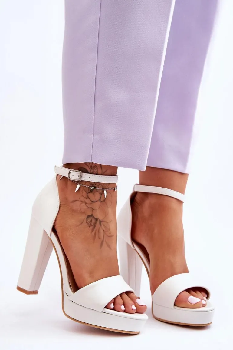 Modne sandałki damskie zostały wykonane z eko skóry. Model ten posiada klasyczne zapinanie na regulowany pasek ze sprzączką. Sandałki osadzono na platformie oraz wysokim obcasie w postaci słupka. Dodatkowo model ten posiada usztywniany zapiętek. Ten buty z pewnością wykorzystasz w wielu sytuacjach! Przy wyborze rozmiaru prosimy sugerować się tabelą rozmiarów.