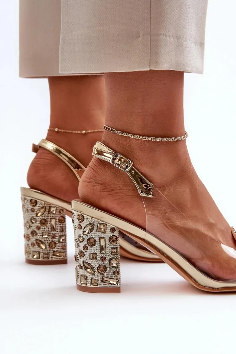 Modne sandały na zdobionym słupku w transparentnym stylu są doskonałym dodatkiem do letnich i wieczorowych stylizacji. Zapinane na regulowany pasek ze sprzączką, zapewniają one wygodę i stabilność. Miękka, skórzana wkładka dodaje komfortu podczas długotrwałego noszenia. Idealne do eleganckich i stylowych kreacji! Przy wyborze rozmiaru prosimy sugerować się poniższą tabelą rozmiarów.