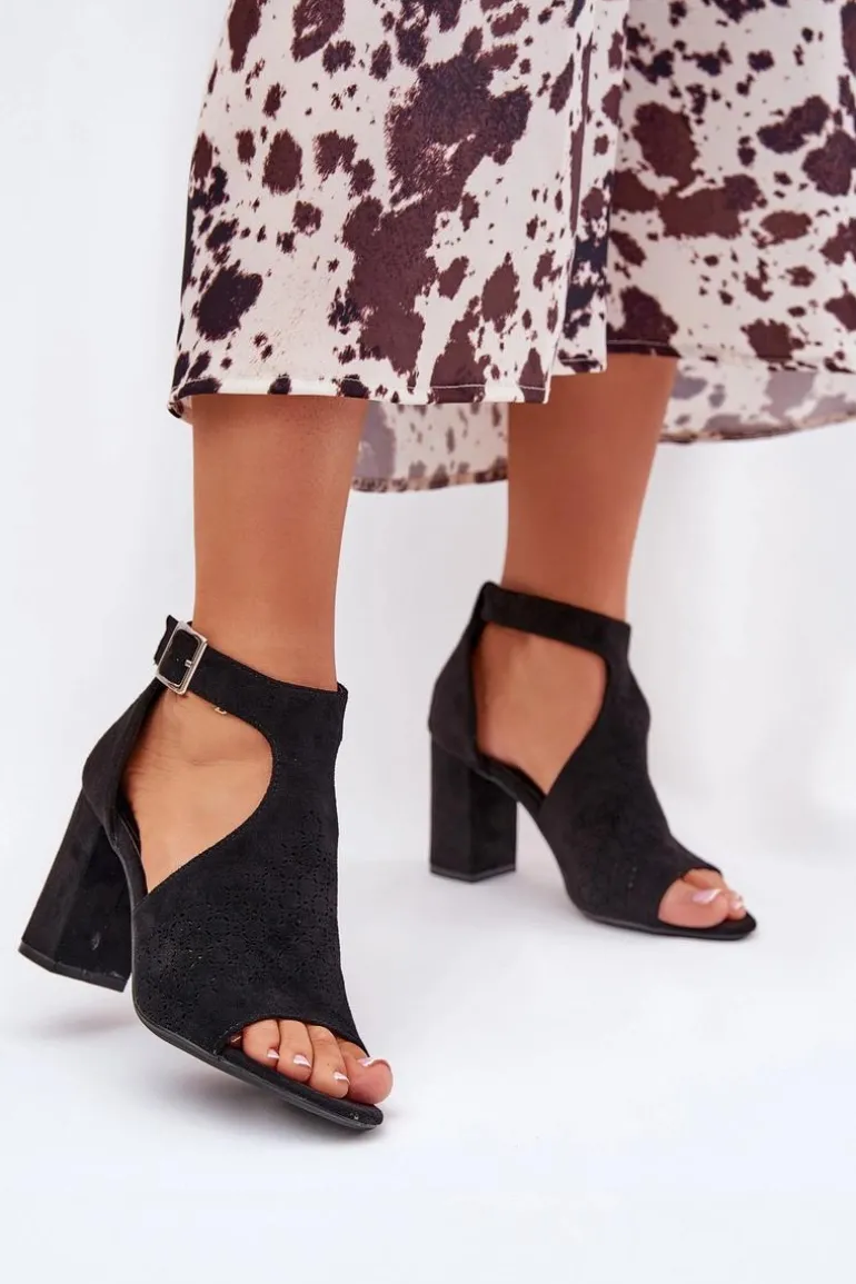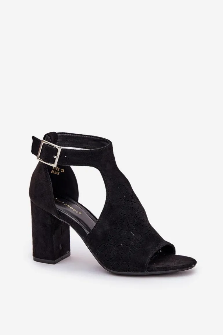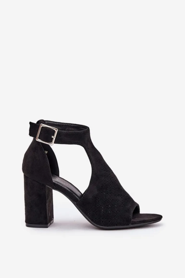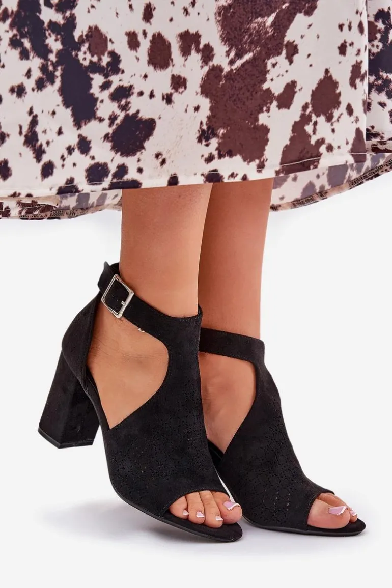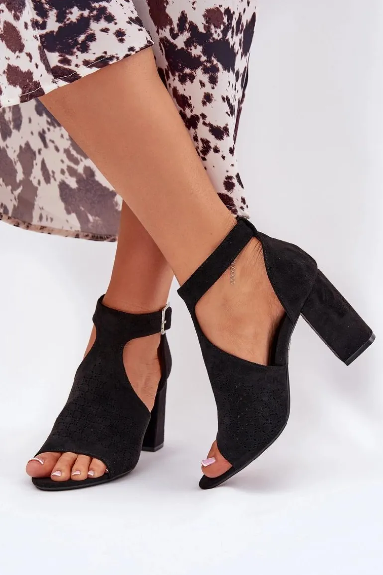 Sandały Z Ażurowym Wzorem Na Słupku Eko Zamszowe Czarne Helori