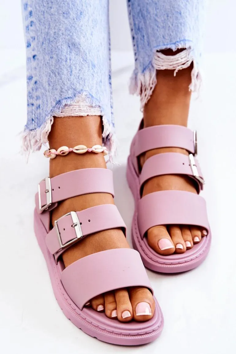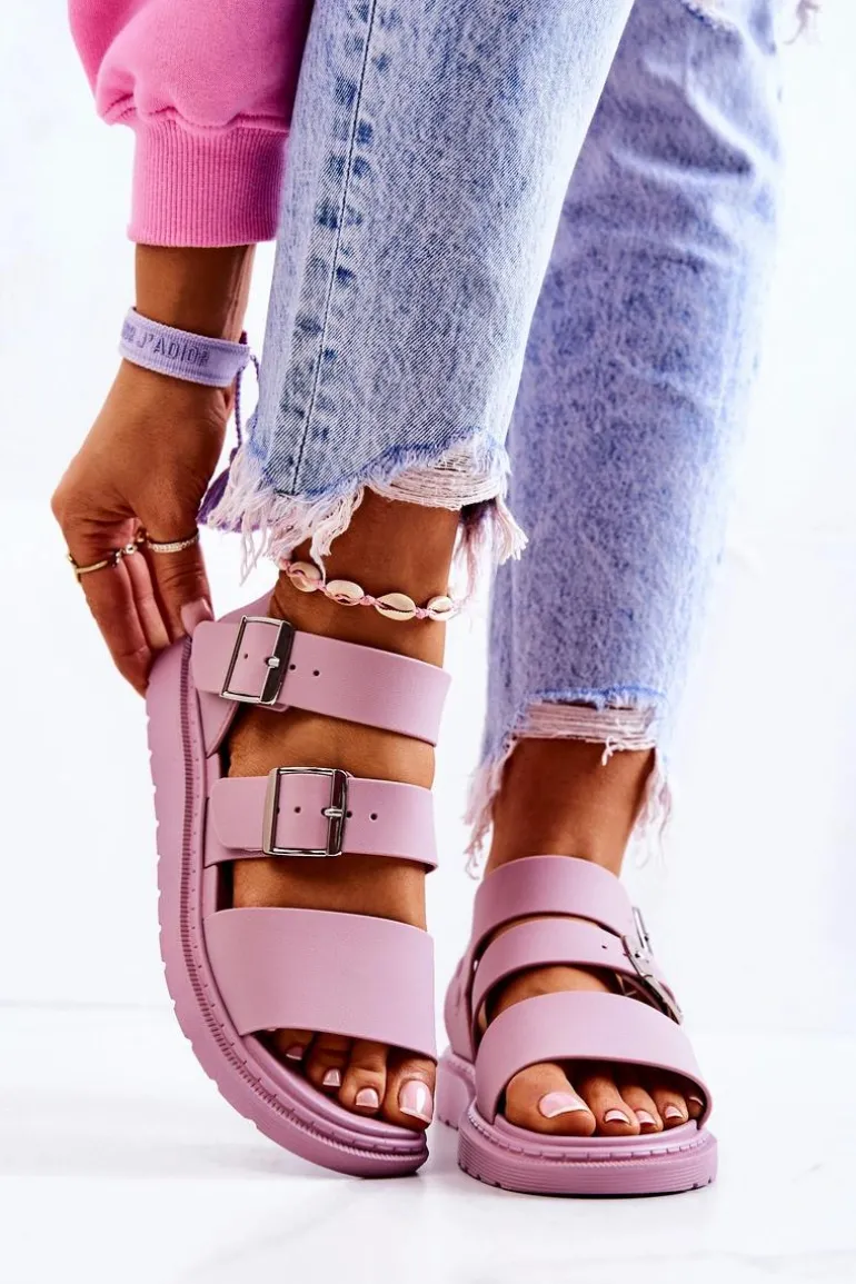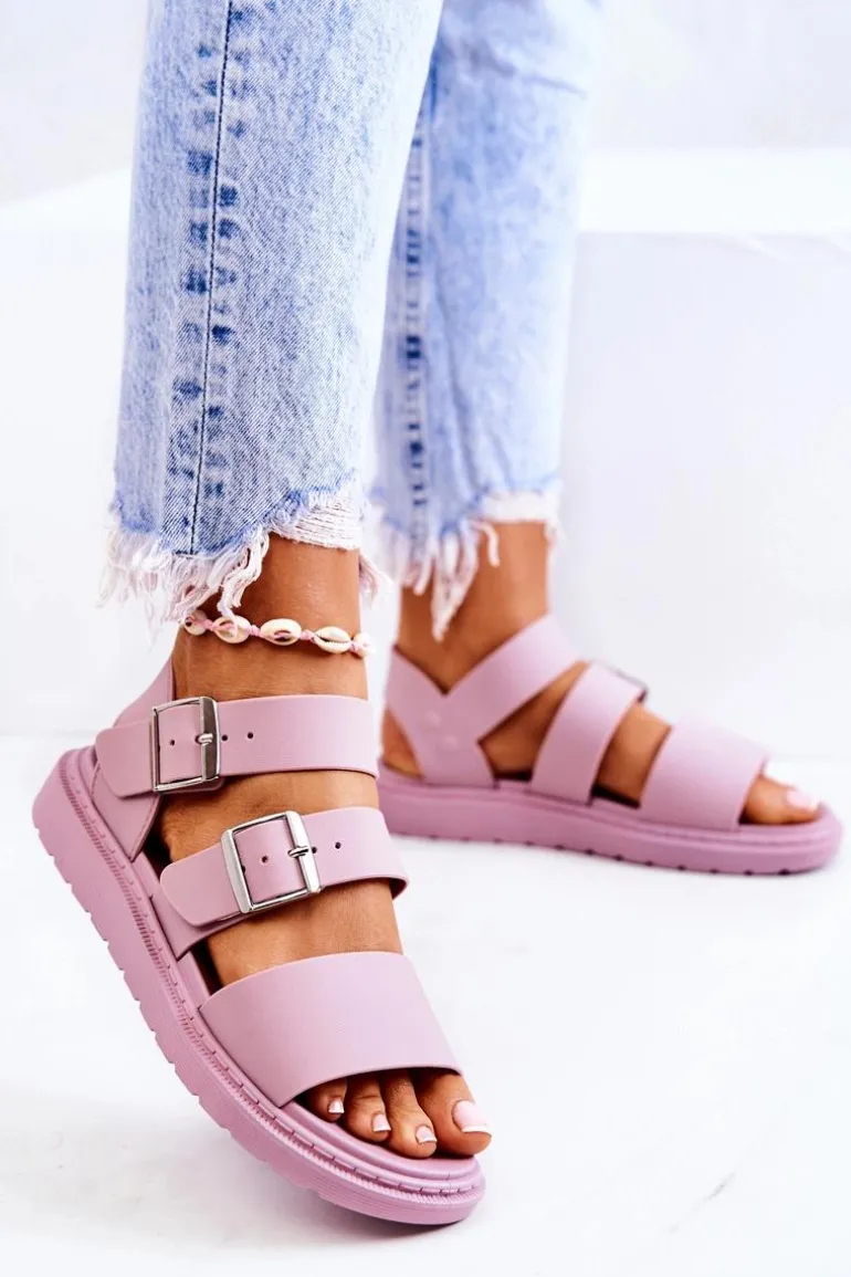 Wspaniałe sandałki z regulowanym paskiem zapinanym na sprzączkę. Wykonane ze sztucznego tworzywa przypominającego gumę. Platforma ochroni przed nierównym podłożem. Możesz dopasować je do tęgości nogi. Koniecznie musisz je mieć! Te sandałki sprawią, że w upalne dni będziesz czuć się niezwykle komfortowo! Przy wyborze rozmiaru prosimy kierować się tabelą rozmiarów.