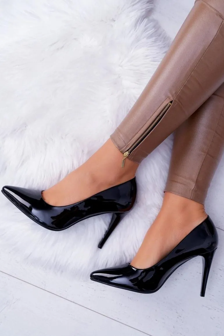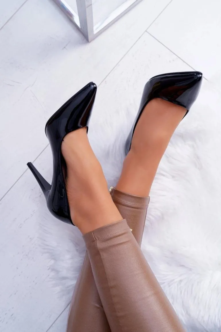 Sergio Leone Lakierowane Czółenka Szpilki Czarne Feliciana