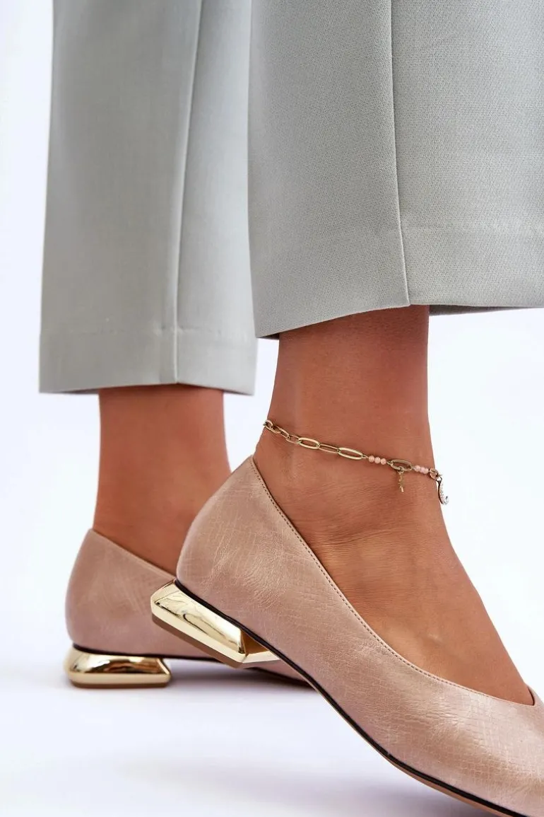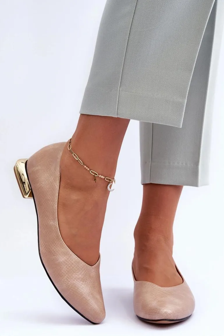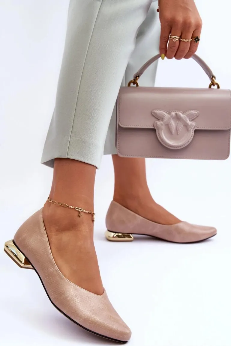 Eleganckie baleriny zostały wykonane z eko skóry. Buty te osadzono na płaskim obcasie. Profilowana wkładka wykonana ze skóry naturalnej zapewni komfortowe użytkowanie obuwia. Migdałowy nosek optycznie wysmukli nogi. Baleriny wykorzystasz do wielu stylizacji zarówno z sukienkami, spódniczkami jak i spodniami. Zapiętek w tym obuwiu jest usztywniony. Przy wyborze rozmiaru prosimy sugerować się tabelą rozmiarów.
