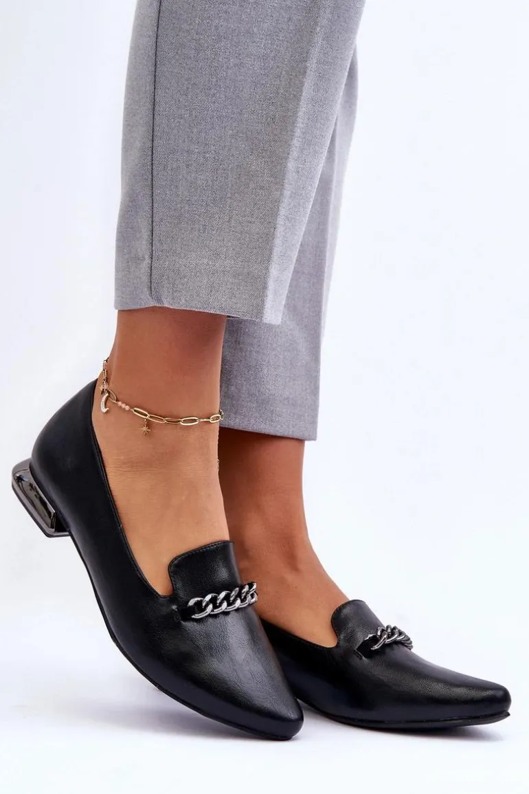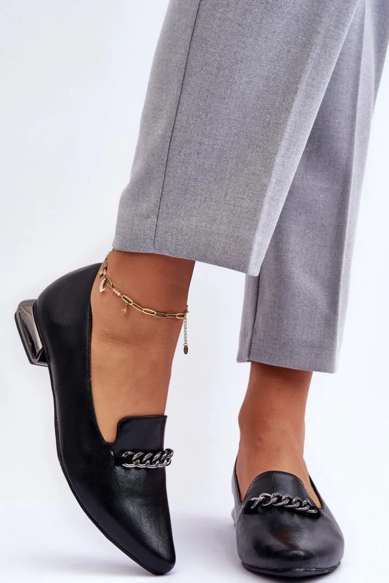 Eleganckie baleriny zostały wykonane z eko skóry. Buty te osadzono na płaskim obcasie. Profilowana wkładka wykonana ze skóry naturalnej zapewni komfortowe użytkowanie obuwia. Migdałowy nosek optycznie wysmukli nogi. Baleriny wykorzystasz do wielu stylizacji zarówno z sukienkami, spódniczkami jak i spodniami. Przy wyborze rozmiaru prosimy sugerować się tabelą rozmiarów.