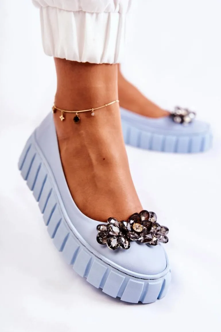 Skórzane Baleriny Na Platformie Z Ozdobą Niebieskie Ladette