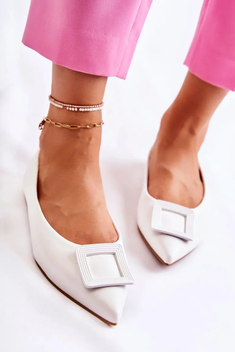 Skórzane Baleriny Z Ozdobą W Szpic Białe Simone