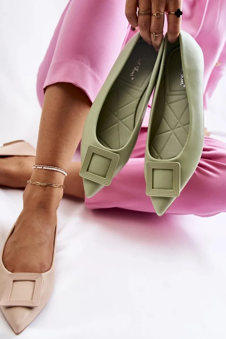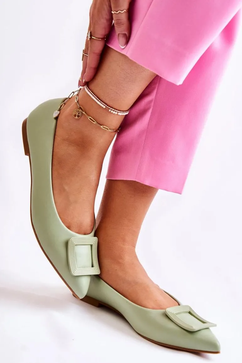 Modne baleriny z ozdobnym elementem z tworzywa sztucznego na przodzie. Buty wykonane są w całości z eko skóry. Miękka wkładka zadba o Twój komfort nawet podczas całodziennego użytkowania. Nosek w szpic. Baleriny dopełnią wiele letnich stylizacji. Osadzone na płaskim obcasie z antypoślizgową podeszwą. Koniecznie powinnaś sprawdzić także pozostałą kolekcję balerinek! Przy wyborze rozmiaru prosimy sugerować się tabelą rozmiarów.