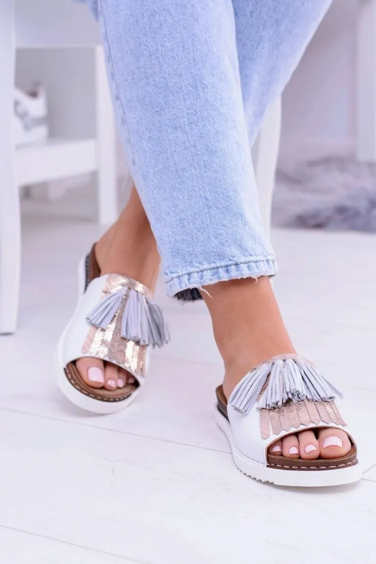 Wspaniała kolekcja damskich skórzanych klapków renomowanej firmy Maciejka. Wykonane ręcznie z dbałością o każdy detal. Nasz komfort wzbogaci skórzana, wyprofilowana wkładka. Delikatna podeszwa na podwyższeniu z pewnością sprawdzą się w tym sezonie. Świetnie nadają się w każdej codziennej stylizacji dzięki frędzlom na czubku.