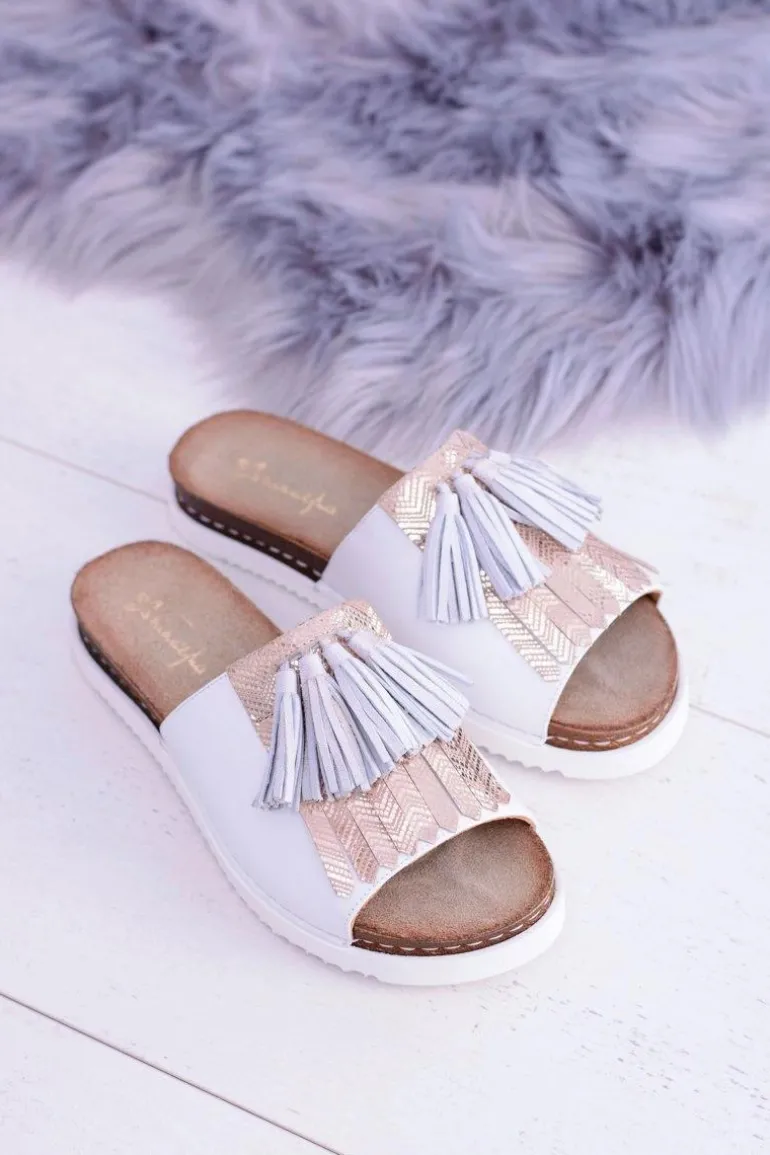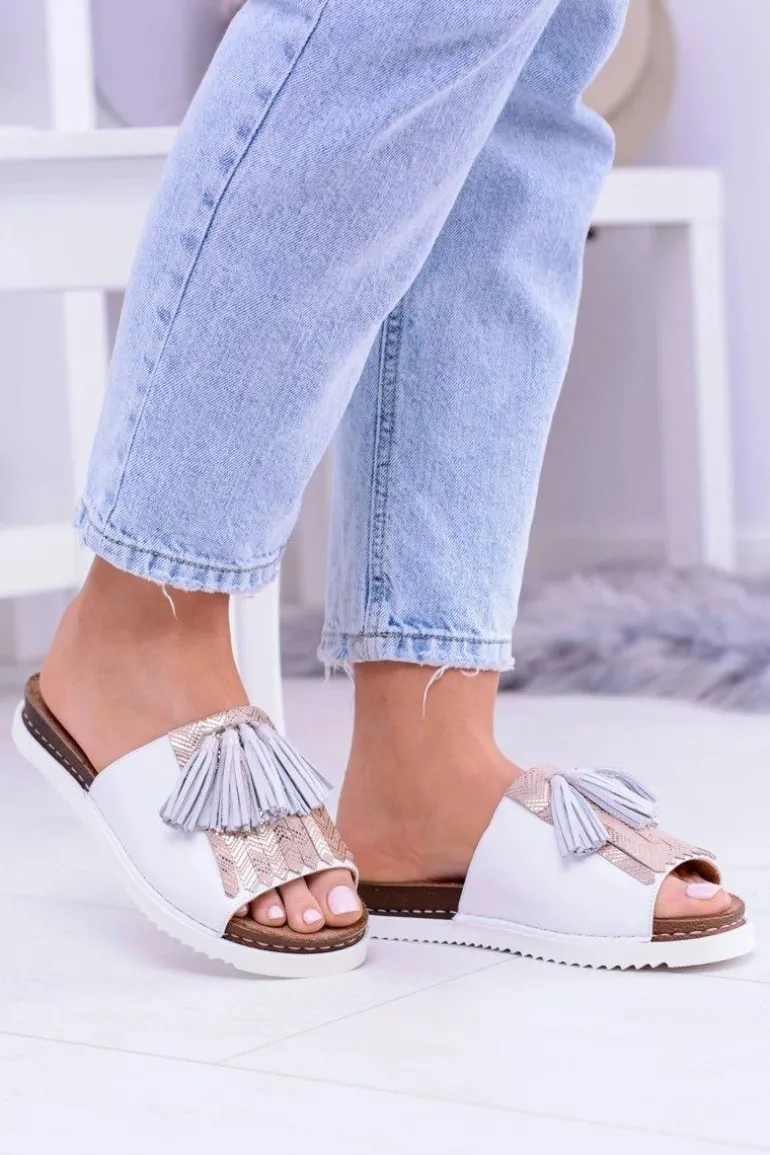 Skórzane Białe Eleganckie Klapki Maciejka Resto