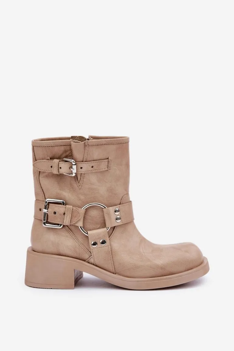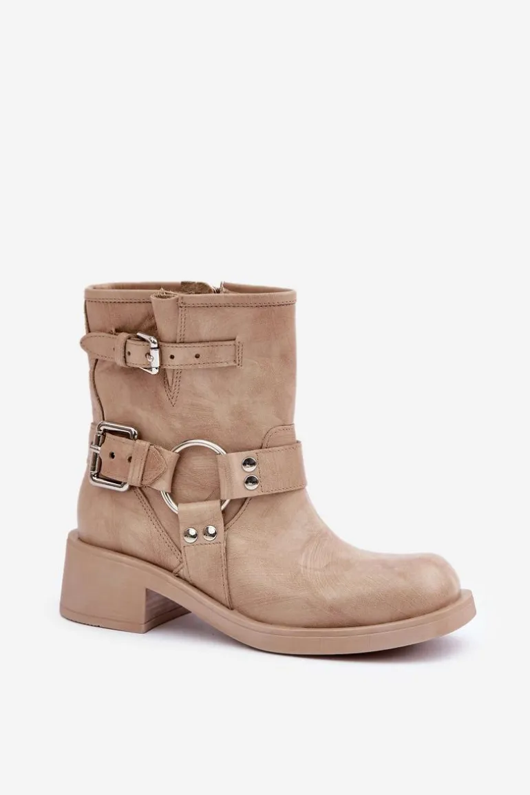 Botki wykonane z naturalnej skóry to idealny wybór na każdą okazję. Osadzone na niskim obcasie, zapewniają komfort i stabilność podczas chodzenia. Zaokrąglone noski dodają subtelnego charakteru. Model zapinany na zamek, co ułatwia zakładanie. Cholewka ozdobiona efektownym połączeniem pasków, które dodają stylowego akcentu. Te botki świetnie sprawdzą się w codziennych stylizacjach, łącząc elegancję z wygodą. Przy wyborze rozmiaru prosimy sugerować się tabelą rozmiarów.