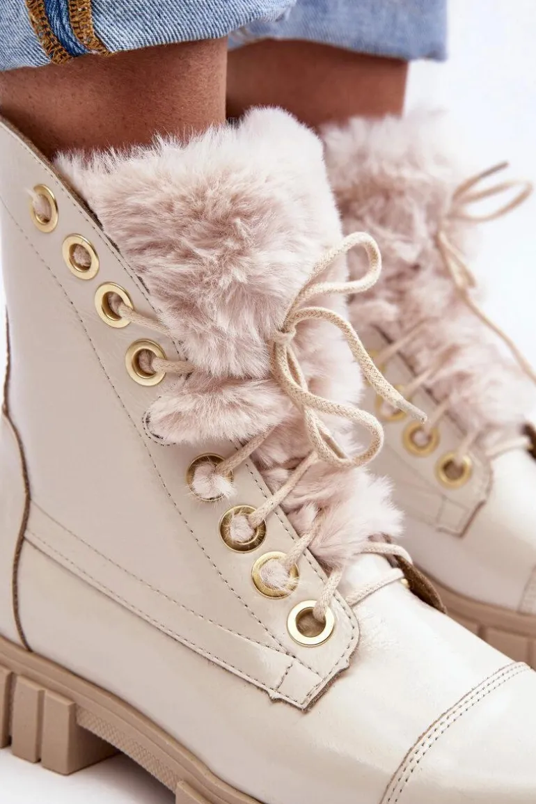 Klasyczne botki damskie zostały wykonane z wysokiej jakości naturalnych skór. Osadzone na płaskim obcasie i platformie. Model klasycznie sznurowany. Z przodu ozdobne, grube futerko. Zapiętek jest usztywniony. Skórzane botki doskonale sprawdzą się w wielu wiosennych stylizacjach. Musisz je mieć w swojej szafie! Przy wyborze rozmiaru prosimy sugerować się tabelą rozmiarów.