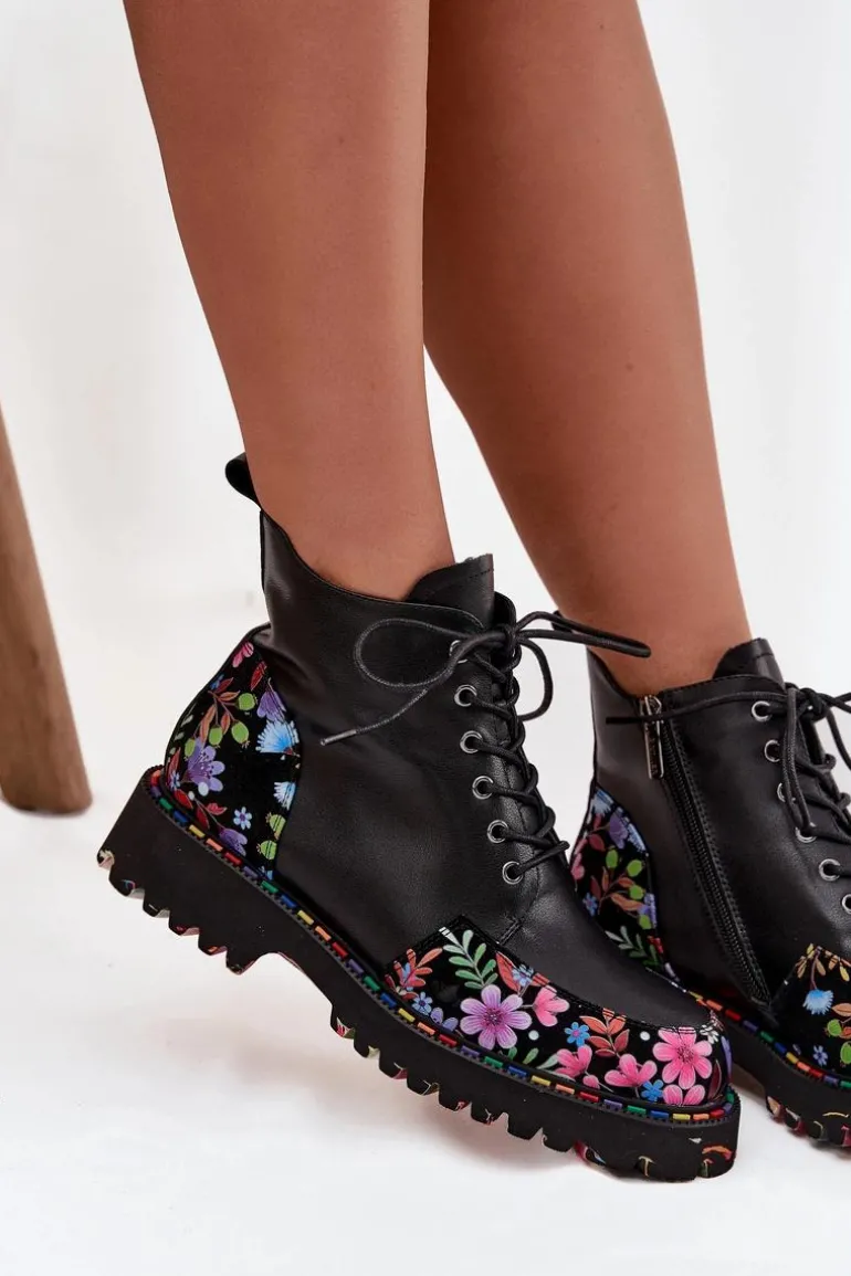 Botki damskie od marki Artiker to propozycja, która łączy wygodę z wyjątkowym, kobiecym stylem. Wykonane z wysokiej jakości naturalnej skóry, prezentują się elegancko i są trwałe, zapewniając komfort codziennego użytkowania. Model łączy klasyczne sznurowanie z praktycznym zamkiem, co umożliwia idealne dopasowanie do stopy oraz ułatwia zakładanie i zdejmowanie butów. Delikatne ocieplenie sprawia, że botki sprawdzą się także w chłodniejsze dni, zapewniając przyjemne ciepło. Całość zdobi subtelny motyw kolorowych kwiatuszków, który nadaje wyjątkowego uroku i oryginalnego charakteru, czyniąc je doskonałym uzupełnieniem zarówno casualowych, jak i bardziej kobiecych stylizacji. Przy wyborze rozmiaru prosimy sugerować się tabelą rozmiarów.