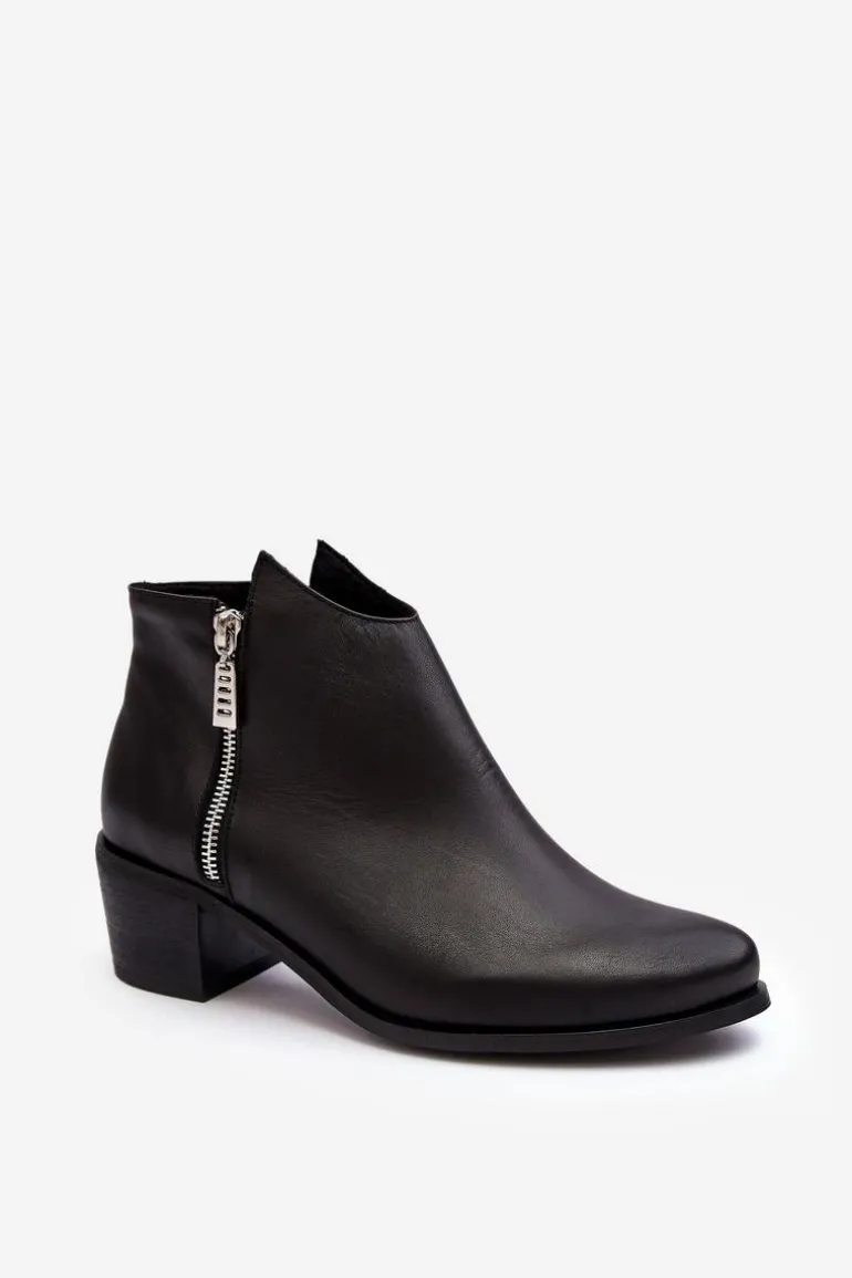 Botki damskie wykonane z naturalnej skóry. Ocieplone wewnątrz kocem obuwniczym. Obcas w postaci niskiego słupka. Cholewka lekko za kostkę z suwakami. Usztywniany zapiętek zapewni stabilizację stopy. Noski w migdał. Ten klasyczny fason powinien znaleźć się w Twojej szafie! Przy wyborze rozmiaru prosimy sugerować się tabelą rozmiarów.
