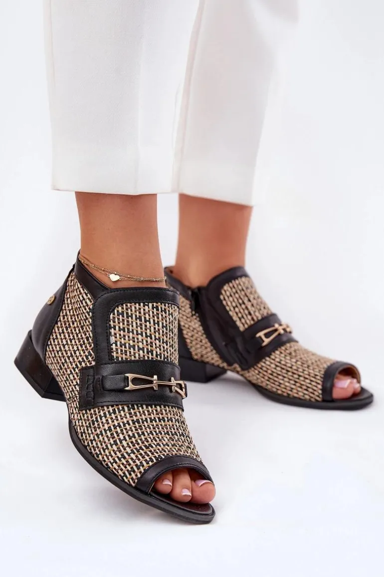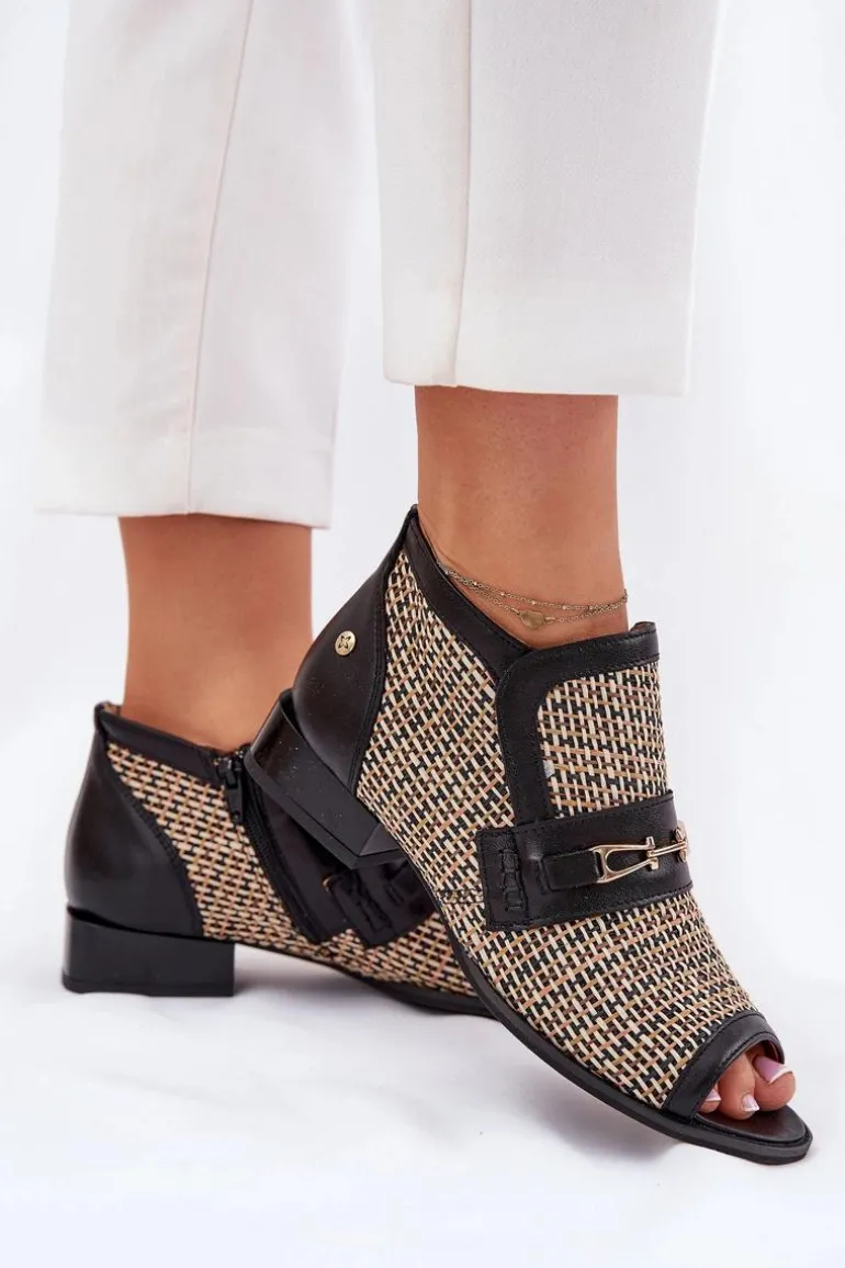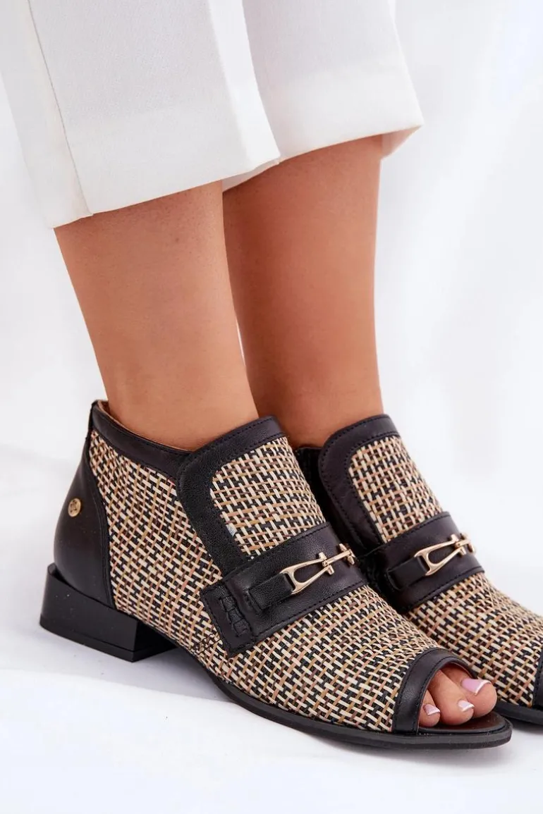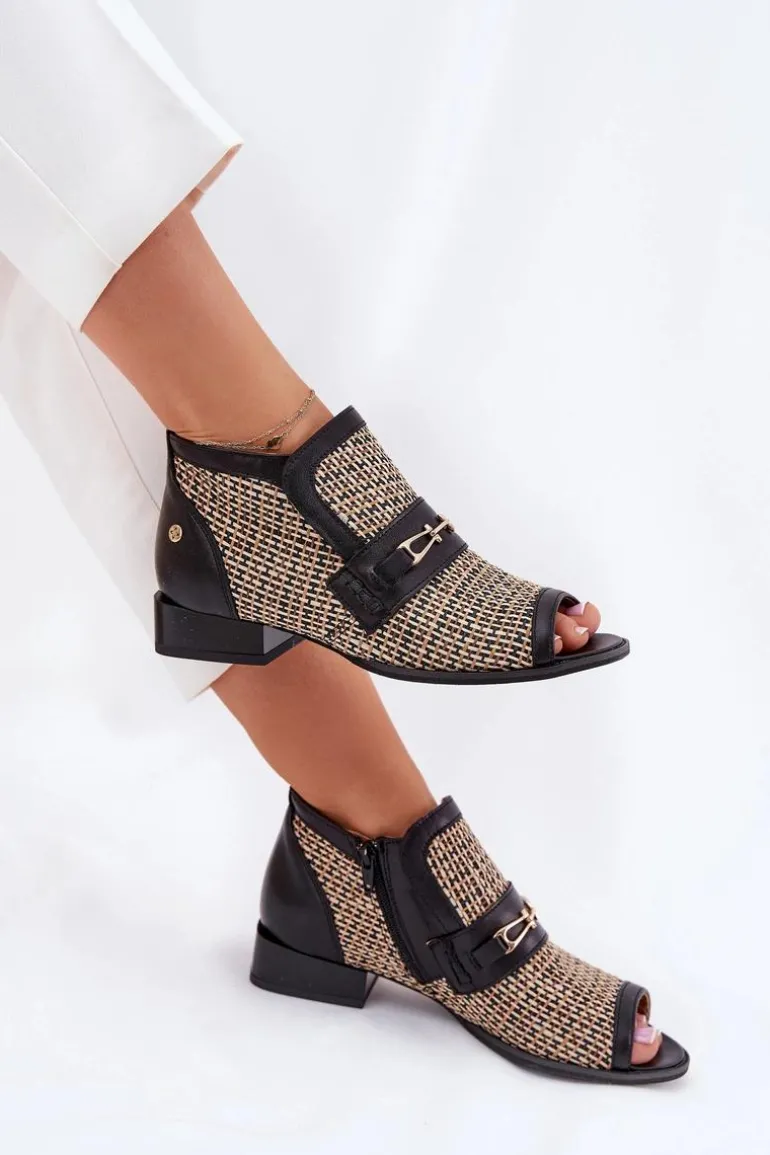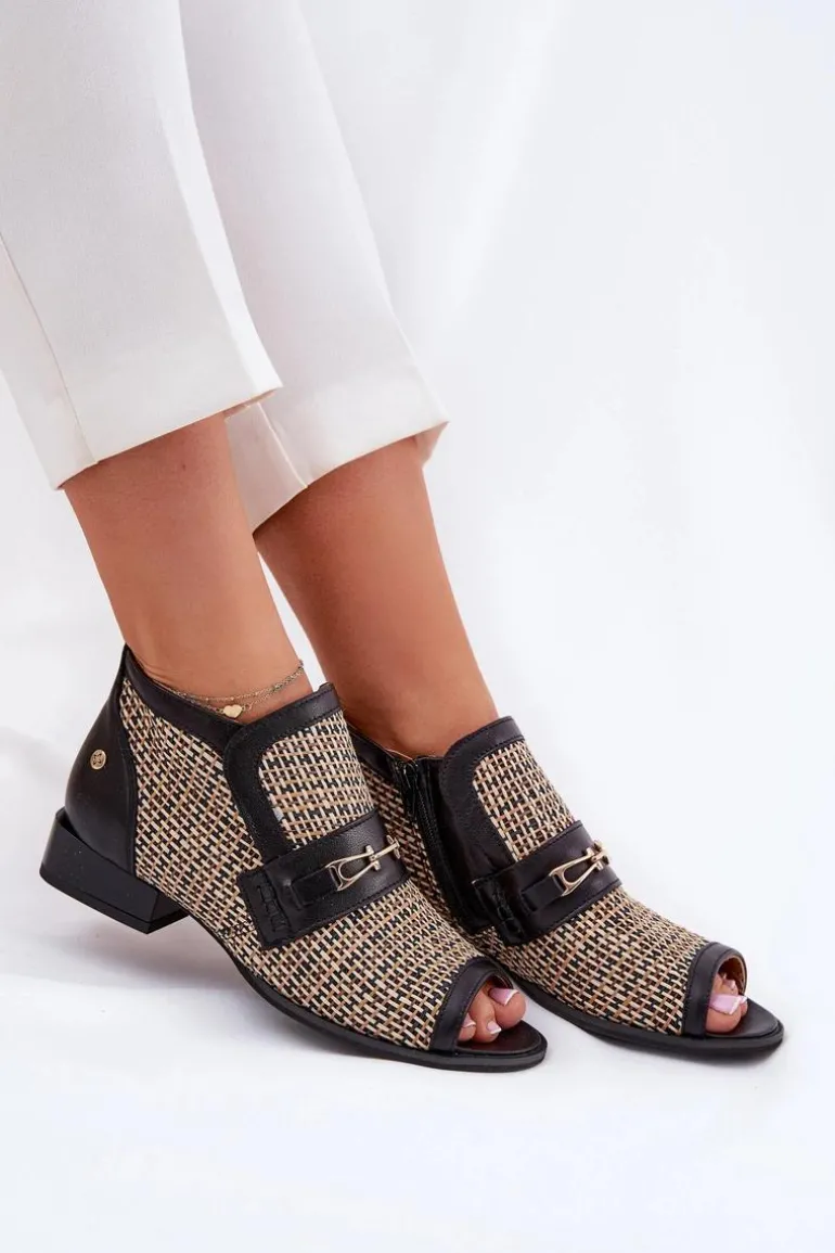 Botki damskie od marki Maciejka, wykonane z naturalnej skóry, to elegancki i stylowy wybór na każdą okazję. Model wyróżnia się odkrytymi palcami oraz plecionką, która dodaje mu lekkości i oryginalności. Z przodu znajduje się subtelna złota ozdoba, która podkreśla elegancję obuwia. Zapinane na zamek, zapewniają łatwe zakładanie i zdejmowanie, a niski obcas w formie klocka gwarantuje komfort przez cały dzień. Te botki to doskonały wybór do różnorodnych stylizacji! Przy wyborze rozmiaru prosimy sugerować się tabelą rozmiarów.