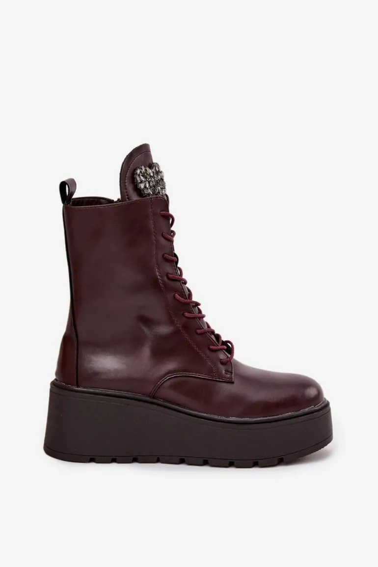 Botki damskie marki Jezzi to propozycja dla kobiet, które cenią wygodę połączoną z modnym wyglądem. Wykonane z naturalnej skóry, wyróżniają się trwałością oraz eleganckim wyglądem. Osadzone na stabilnym koturnie z platformą, optycznie wydłużają sylwetkę, jednocześnie zapewniając komfort podczas noszenia. Wnętrze butów zostało ocieplone, dzięki czemu sprawdzą się one idealnie w chłodniejsze dni sezonu jesienno-zimowego. Model posiada sznurowanie i boczny zamek, co ułatwia dopasowanie oraz szybkie zakładanie. Szczególną uwagę zwracają błyszczące kryształki umieszczone na języku, układające się w kształt serca – ten ozdobny detal dodaje wyjątkowego uroku i podkreśla ich kobiecy charakter. To obuwie, które doskonale pasuje zarówno do codziennych, jak i bardziej eleganckich stylizacji, stając się oryginalnym akcentem w garderobie. Przy wyborze rozmiaru prosimy sugerować się tabelą rozmiarów.