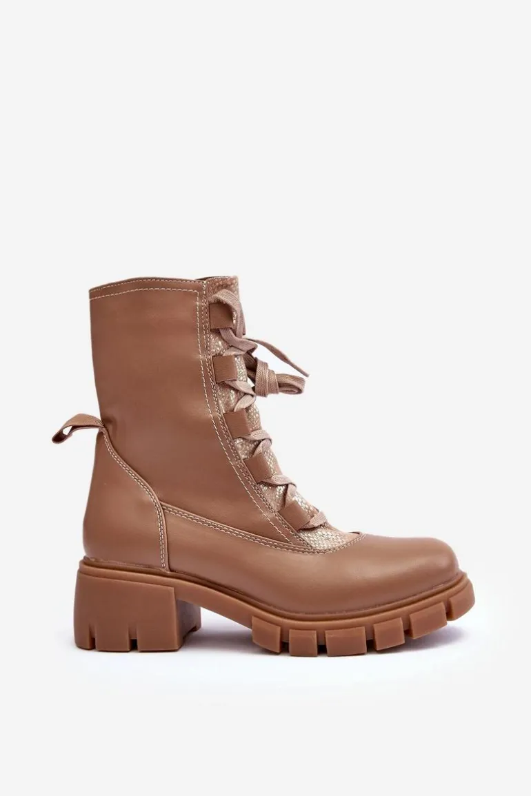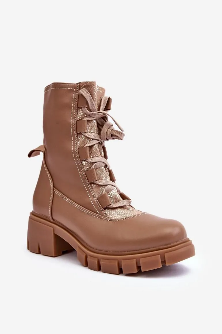 Botki wykonane z eko skóry. Zapinane na suwak z boku cholewki oraz dodatkowo posiadają ozdobne sznurowanie. Ocieplane w środku kocem obuwniczym. Osadzone na płaskim, stabilnym obcasie. Będziesz w nich wyglądać bardzo stylowo, dlatego nie czekaj i kup już dziś! Przy wyborze rozmiaru prosimy sugerować się tabelą rozmiarów.