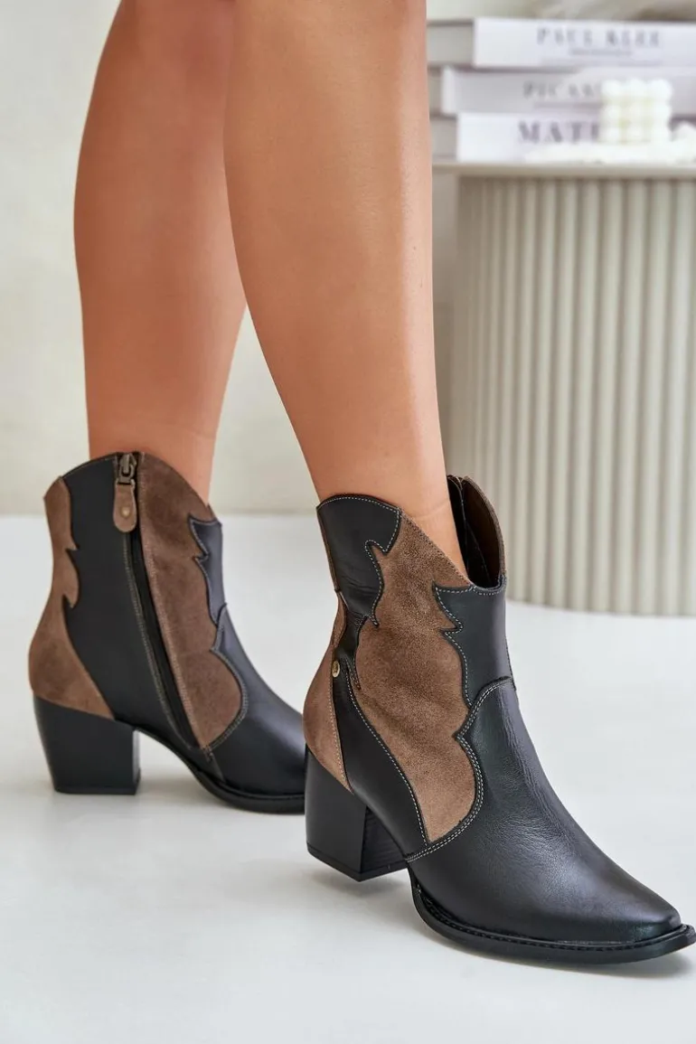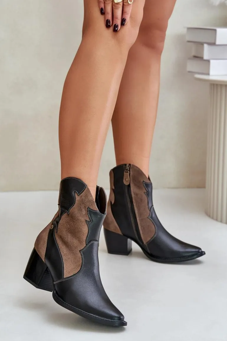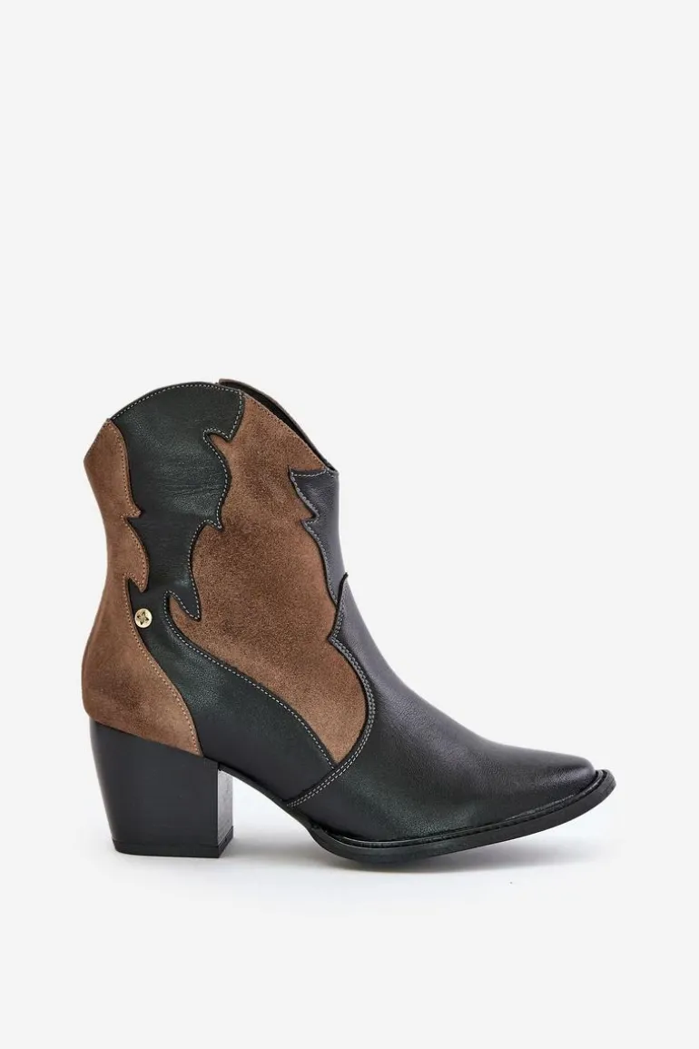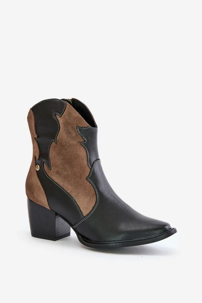 Skórzane botki kowbojki marki Maciejka to stylowy wybór dla miłośniczek mody. Wykonane z wysokiej jakości skóry naturalnej, wyróżniają się szpiczastymi noskami, które nadają im charakterystyczny, elegancki wygląd. Lekko ocieplane, doskonale sprawdzą się w chłodniejsze dni, zapewniając jednocześnie komfort i modny wygląd. To idealna propozycja do wielu stylizacji. Przy wyborze rozmiaru prosimy sugerować się tabelą rozmiarów.