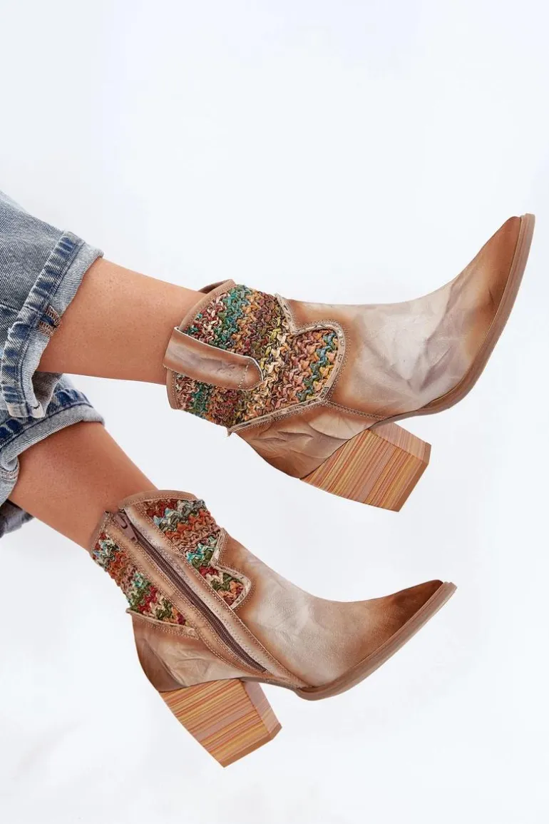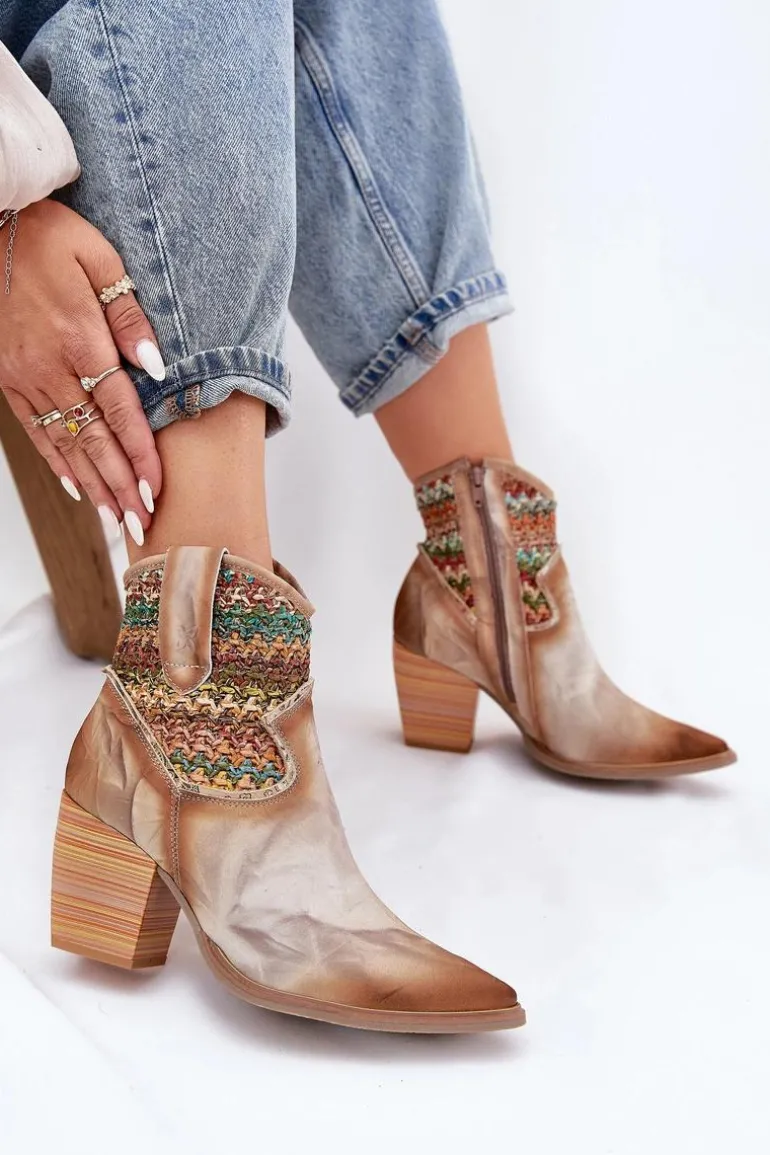 Skórzane botki kowbojki marki Maciejka to modny wybór dla osób ceniących styl i wygodę. Wykonane z wysokiej jakości skóry naturalnej, posiadają szpiczaste noski, które nadają im wyrazistego charakteru. Góra cholewki ozdobiona kolorową plecionką, która przyciąga wzrok i dodaje unikalnego akcentu. Zapinane na zamek, zapewniają łatwość zakładania i idealne dopasowanie. Te botki to doskonała propozycja do różnorodnych stylizacji, które łączą nowoczesność z klasyczną elegancją. Przy wyborze rozmiaru prosimy sugerować się tabelą rozmiarów.
