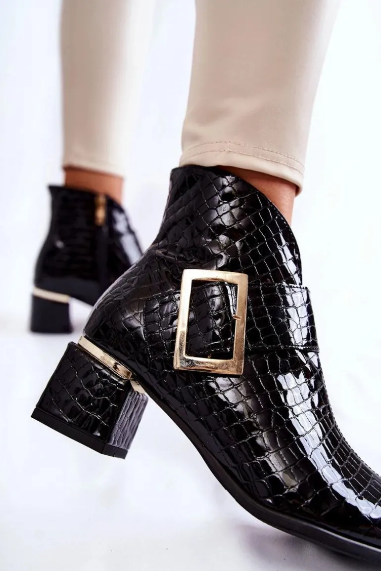 Botki damskie zostały wykonane z wysokiej jakości naturalnej skóry. Model został osadzony na niskim obcasie w postaci klocka. Botki są zapinane na zamek błyskawiczny. Posiadają ozdobną klamrę. Wewnątrz zostały ocieplone kocem obuwniczym. Ten model to idealny wybór na jesienne, chłodne dni. Powinnaś go mieć! Przy wyborze rozmiaru prosimy sugerować się tabelą rozmiarów.