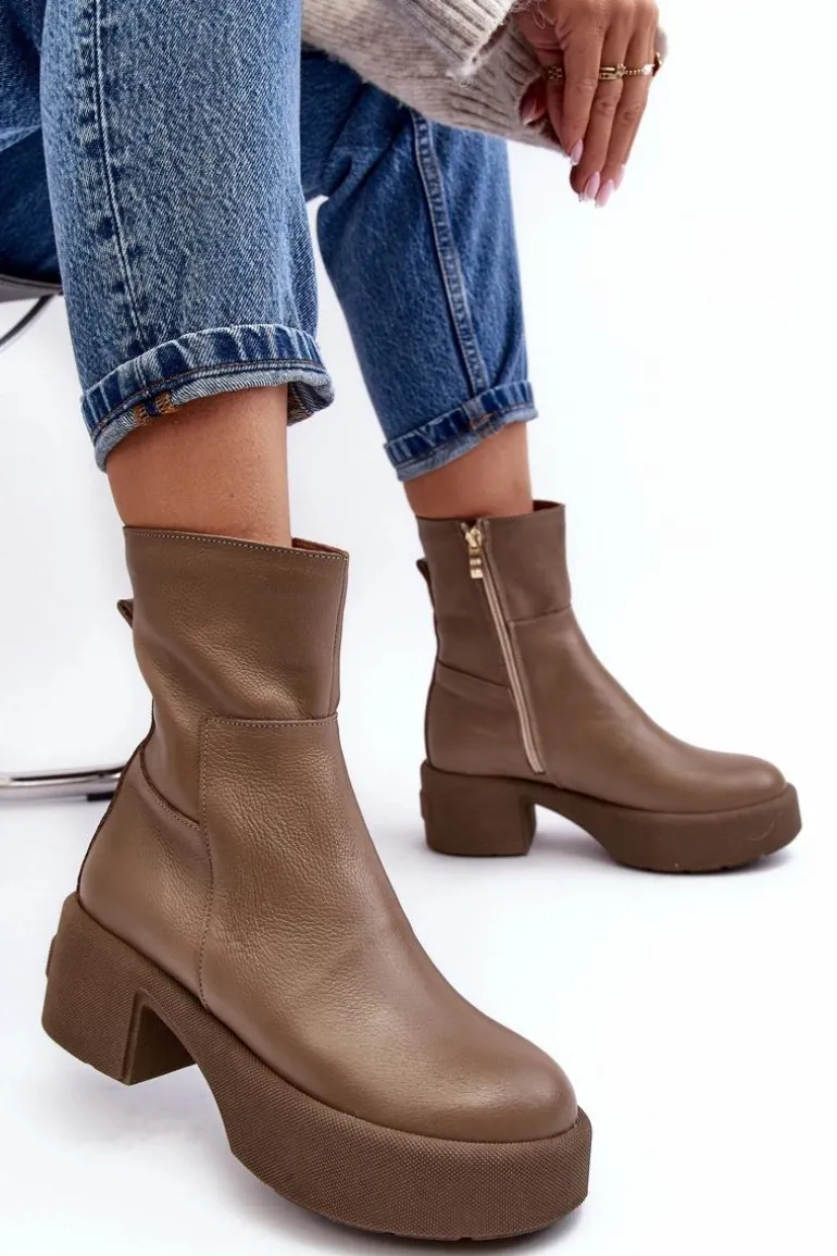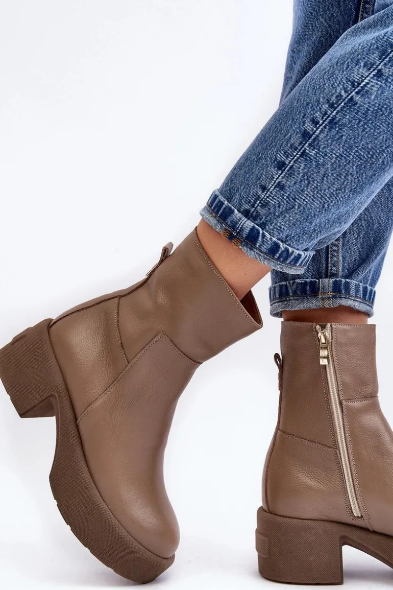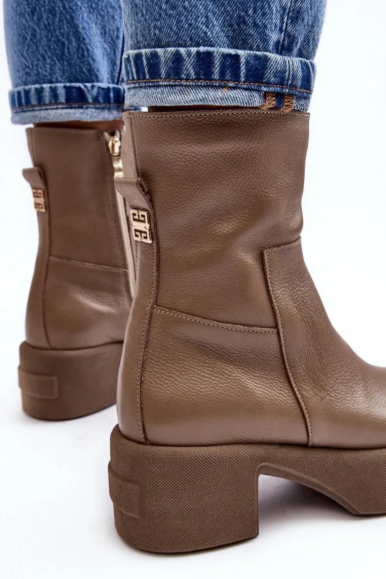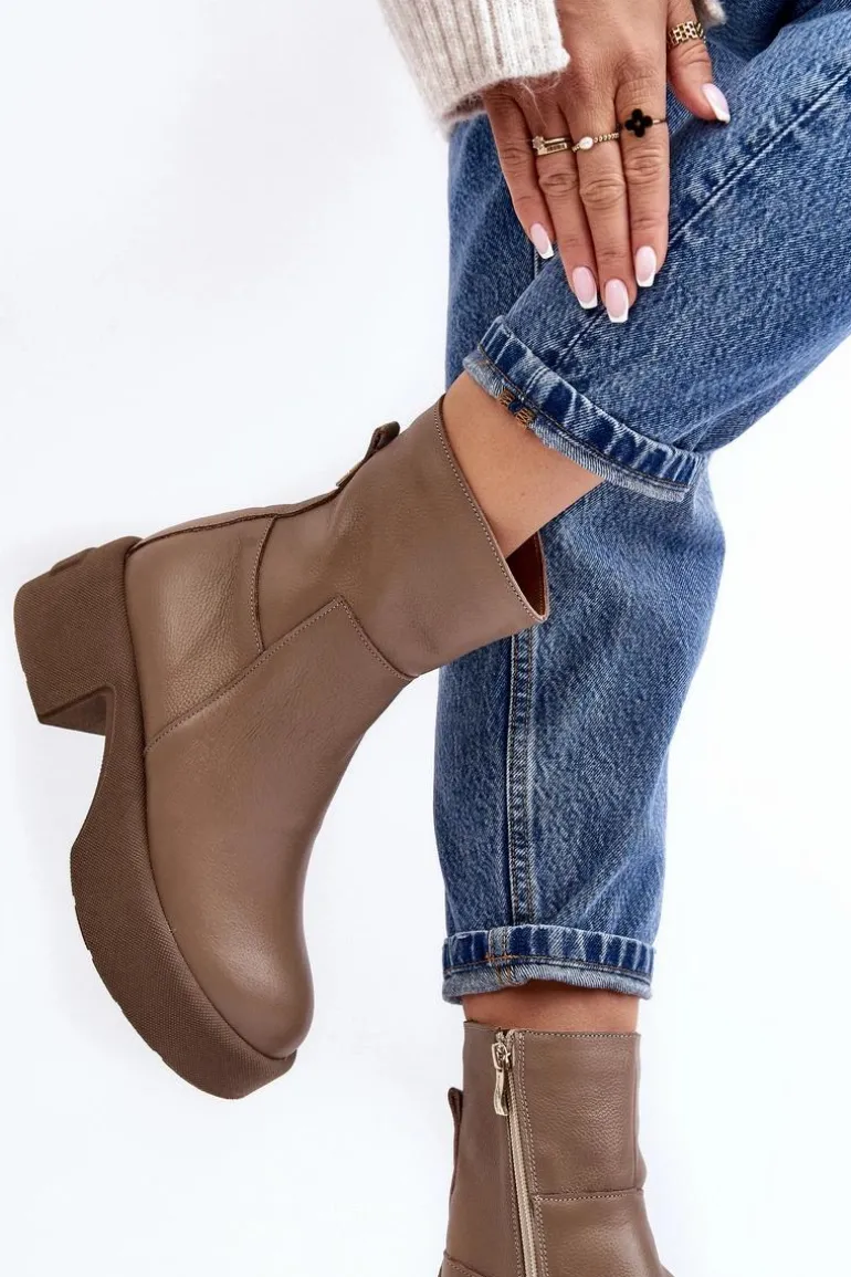 Skórzane Botki Na Niskim Obcasie Ciemnobeżowe Lemar Volavola