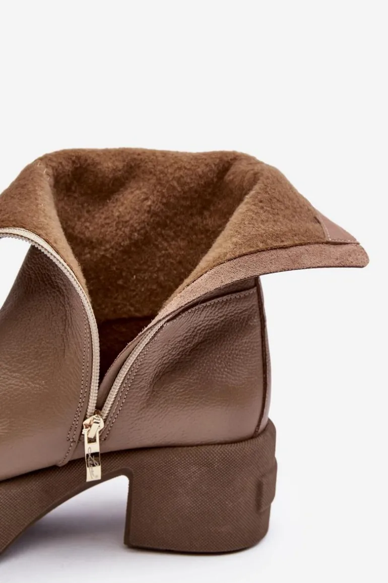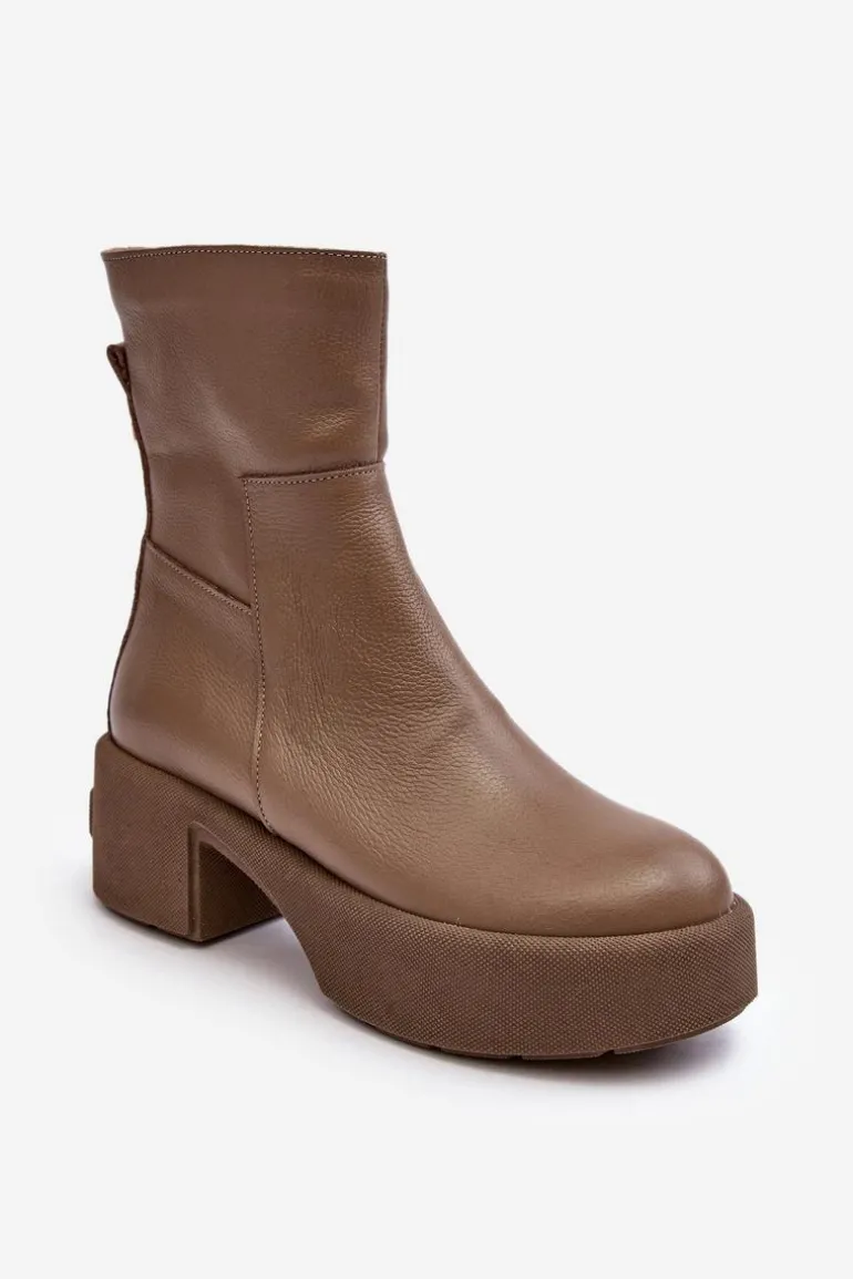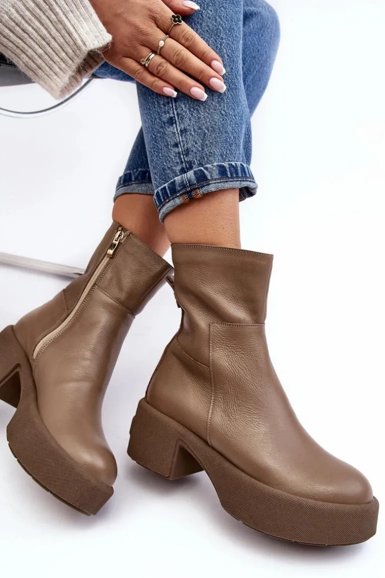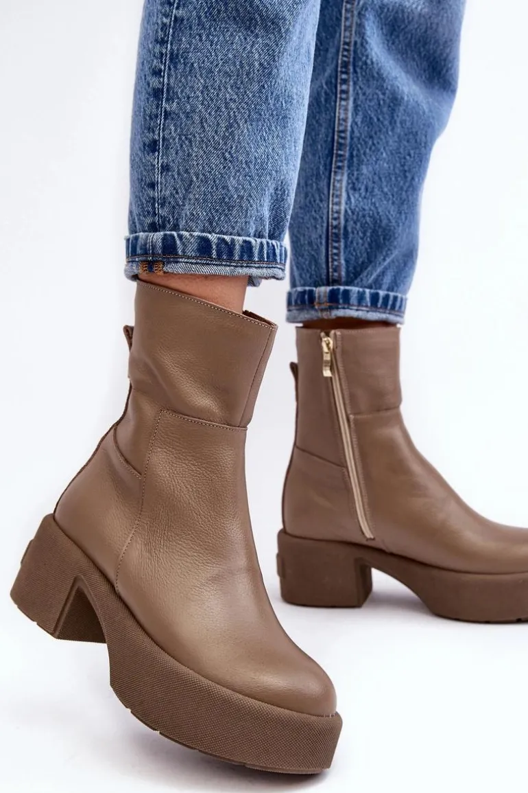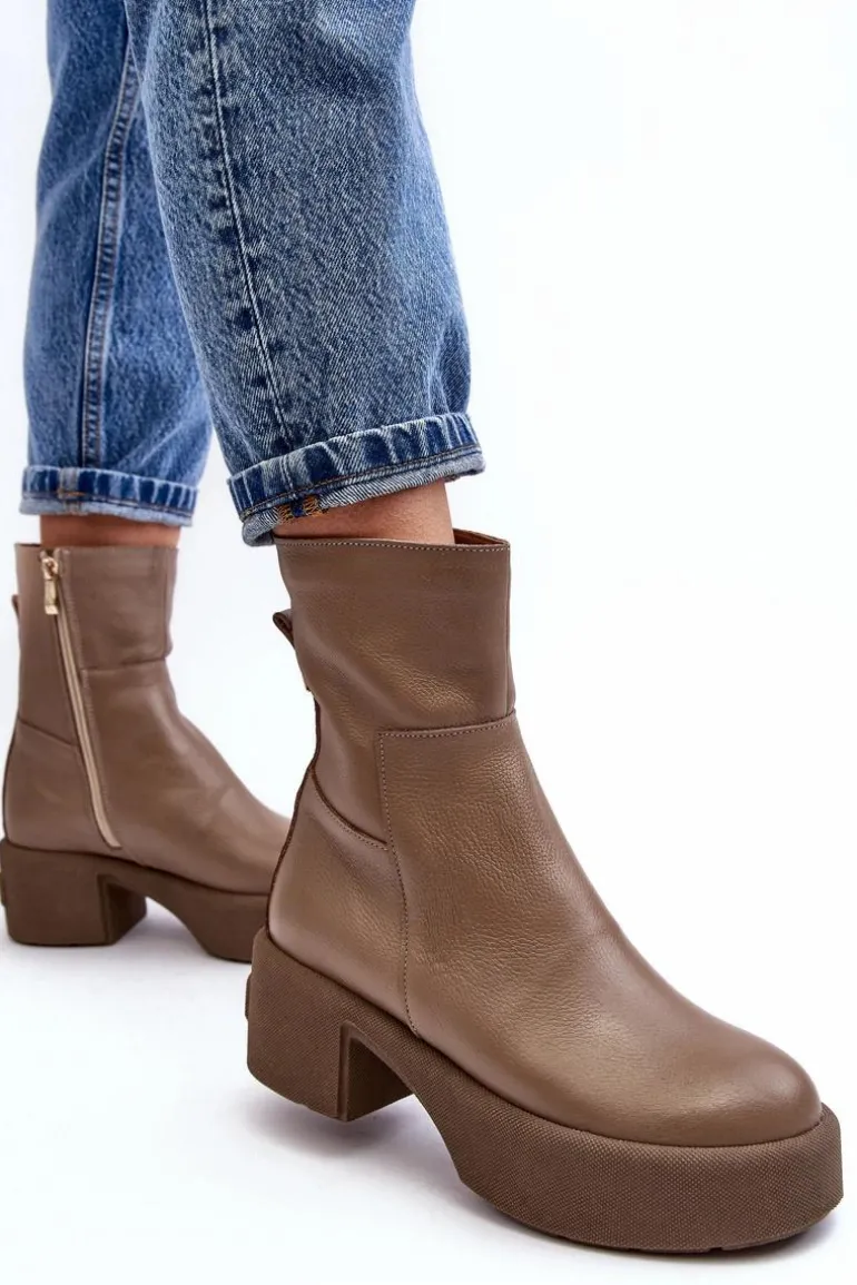 Skórzane Botki Na Niskim Obcasie Ciemnobeżowe Lemar Volavola