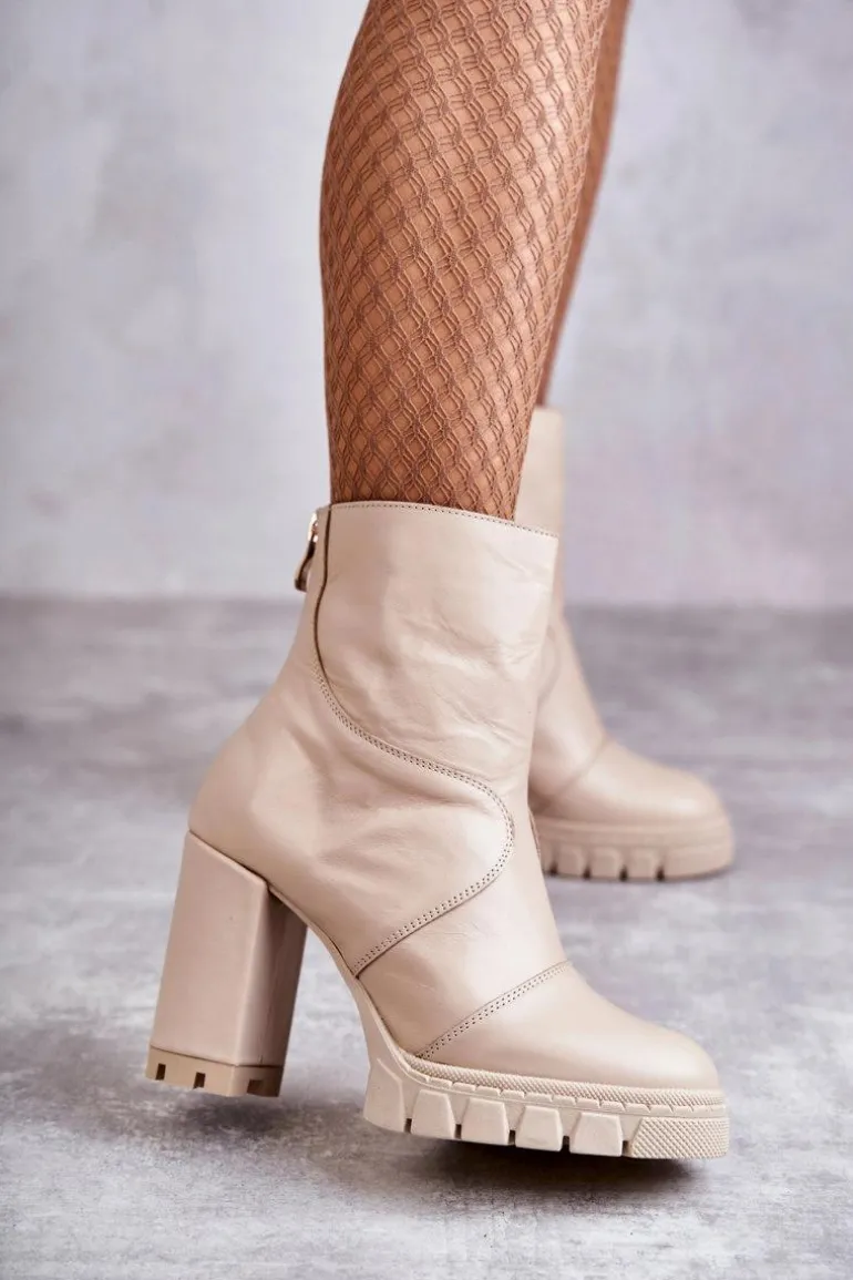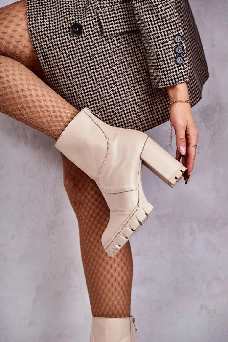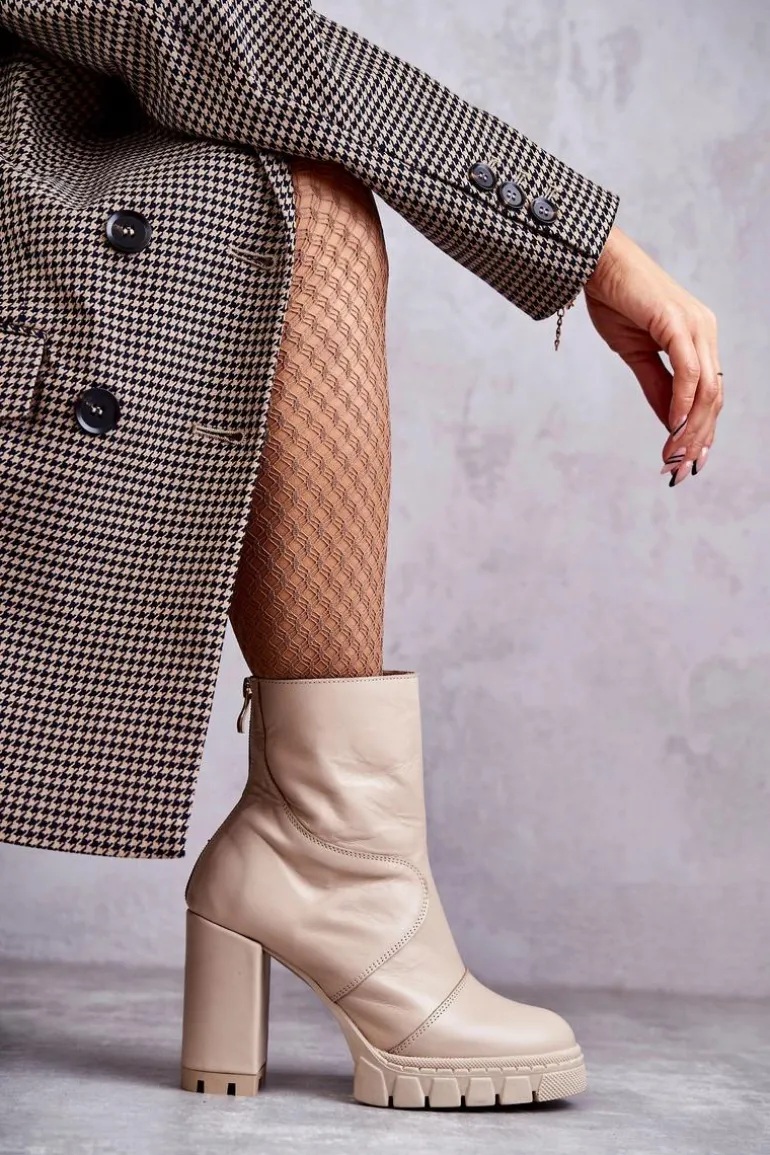 Klasyczny model o fasonie traperów na obcasie. Modne żłobienia po bokach podeszwy. Botki osadzone na delikatnej platformie oraz obcasie w formie słupka. Botki zostały wykonane z naturalnej skóry. Miękka wkładka zapewni komfort podczas użytkowania. Zapinane z tyłu cholewki na suwak. Dodatkowo zapiętek jest usztywniany. Przy wyborze rozmiaru prosimy sugerować się tabelą rozmiarów.