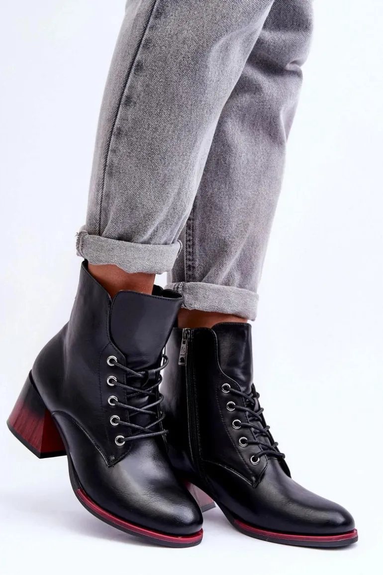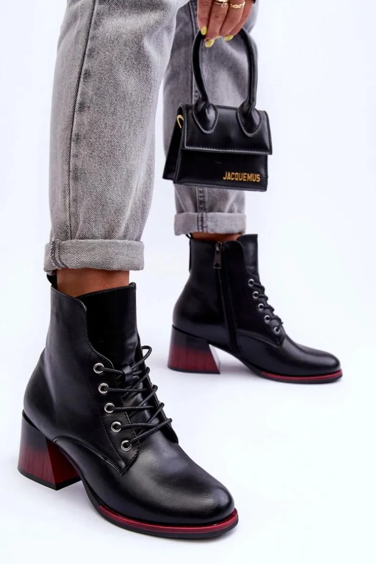 Stylowe botki damskie z cholewką za kostkę. Osadzone na platformie i obcasie. Wykonane z eko skóry. Posiadają zapinanie na suwak oraz dodatkowe sznurowanie. Miękka wkładka zapewni komfortowe użytkowanie obuwia. Zapiętek w tym obuwiu jest usztywniany. Botki będą świetnym uzupełnieniem wielu stylizacji! Przy wyborze rozmiaru prosimy sugerować się tabelą rozmiarów.