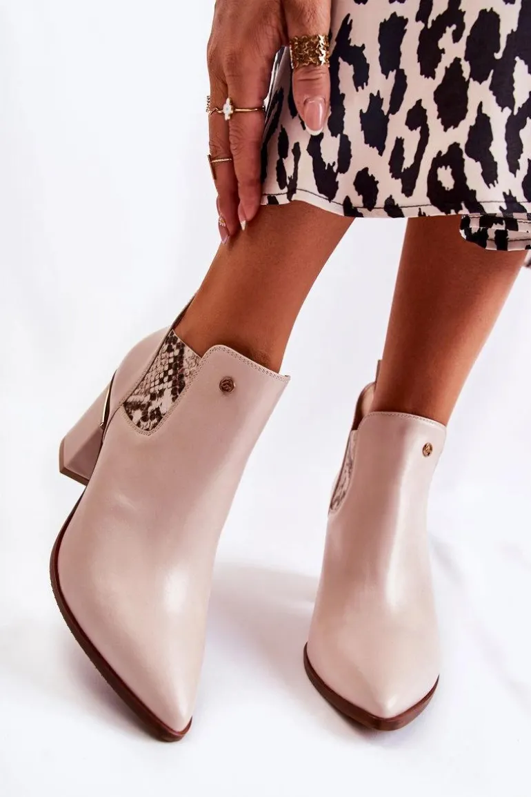 Eleganckie botki świetnie sprawdzą się podczas tworzenia stylizacji w chłodniejsze dni. Botki są wsuwane, z elastycznymi gumkami po bokach cholewki. W całości wykonane ze skóry naturalnej. Atutami tych botków jest przede wszystkim komfort noszenia oraz wysoka jakość wykonania. Dodatkowo posiadają usztywniany zapiętek oraz ozdobny obcas w postaci słupka. Przy wyborze rozmiaru prosimy sugerować się tabelą rozmiarów.