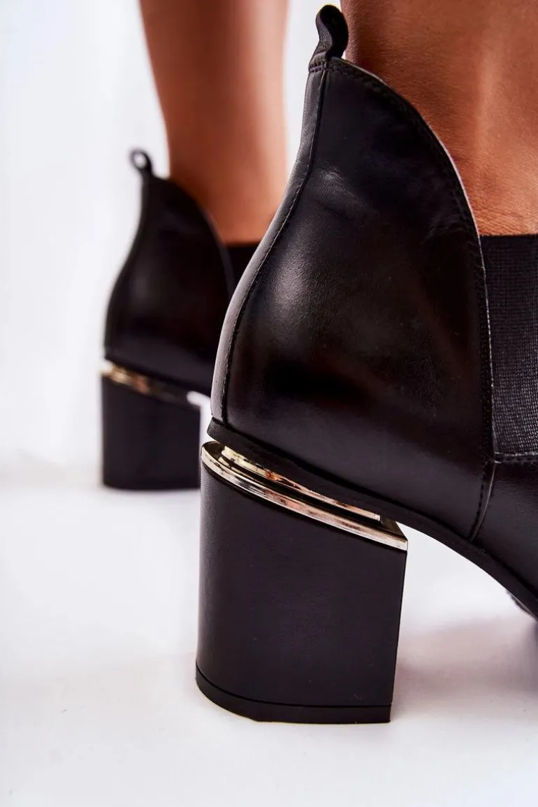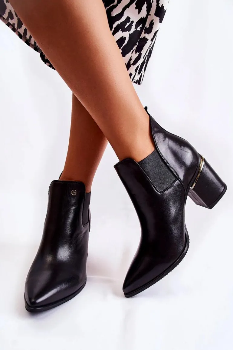 Eleganckie botki świetnie sprawdzą się podczas tworzenia stylizacji w chłodniejsze dni. Botki są wsuwane, z elastycznymi gumkami po bokach cholewki. W całości wykonane ze skóry naturalnej. Atutami tych botków jest przede wszystkim komfort noszenia oraz wysoka jakość wykonania. Dodatkowo posiadają usztywniany zapiętek oraz ozdobny obcas w postaci słupka. Przy wyborze rozmiaru prosimy sugerować się tabelą rozmiarów.