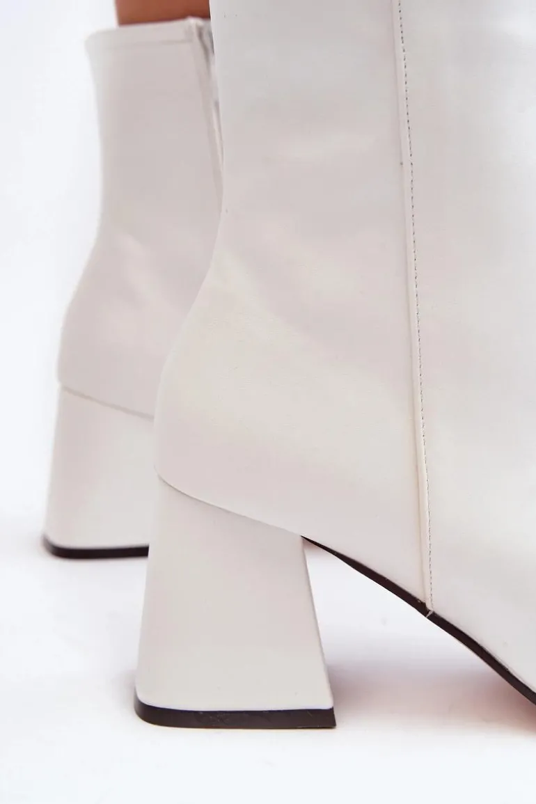 Skórzane Botki Na Obcasie Z Ozdobą Białe Pamelinta