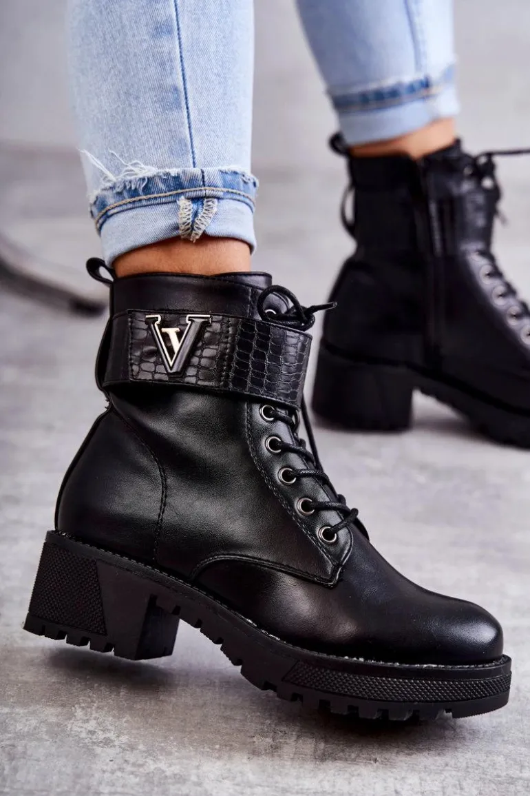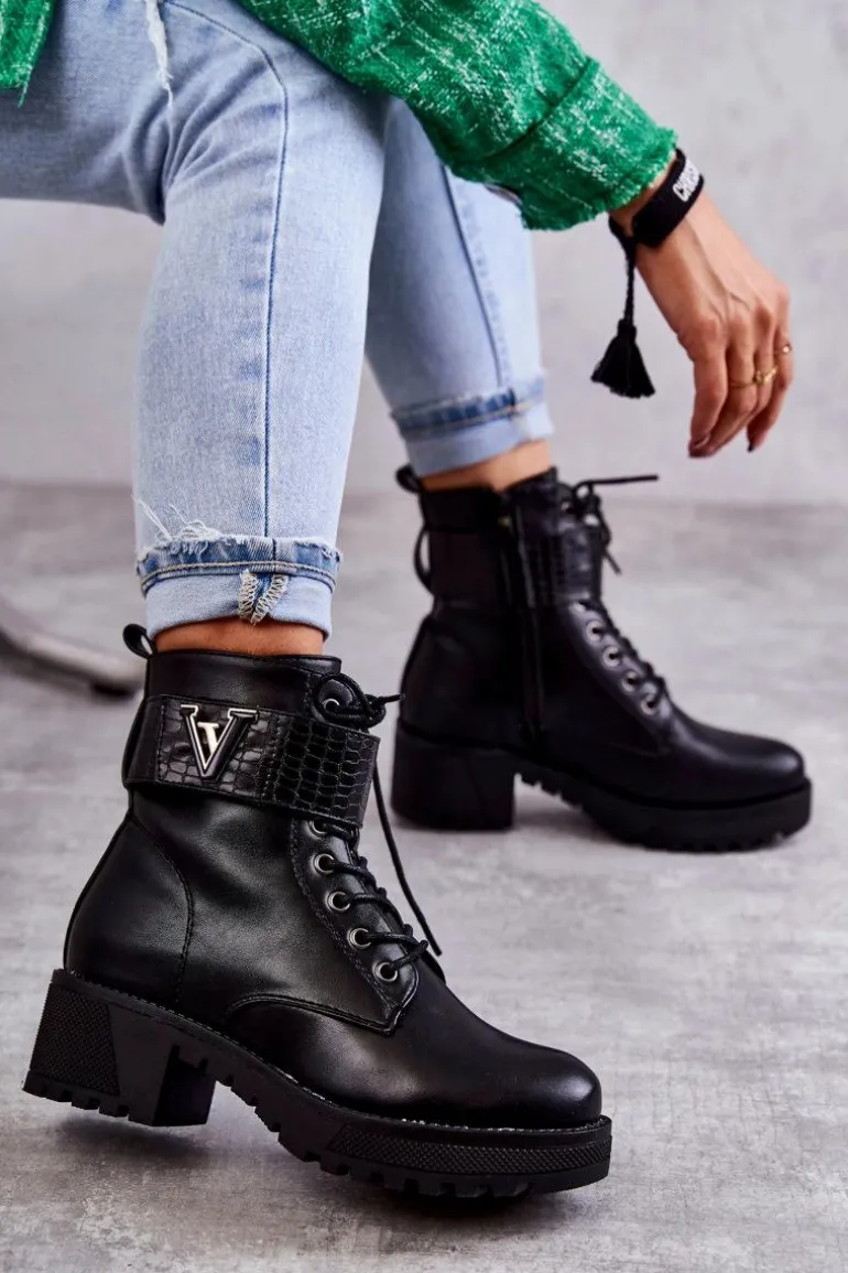 Ocieplane botki – workery świetnie sprawdzą podczas sezonu jesiennego. Zostały wykonane z eko skóry. Posiadają usztywniany zapiętek. Model z klasycznym wiązaniem oraz suwakiem z boku cholewki. Dodatkowo posiadają pasek na rzep z emblematem. Osadzone na platformie z płaskim obcasem. W środku znajduje się koc obuwniczy, który świetnie ochroni przed zimnem. Przy wyborze rozmiaru prosimy sugerować się tabelą rozmiarów.