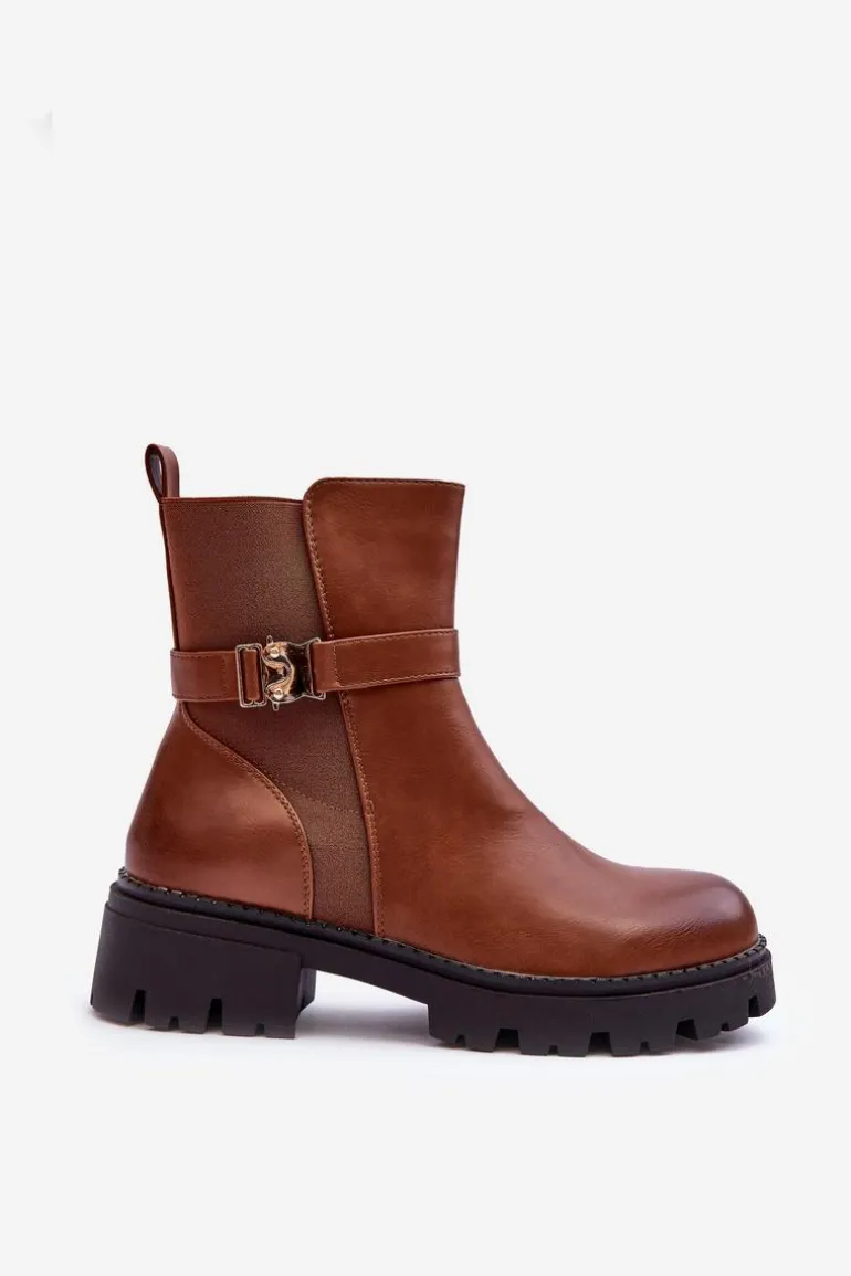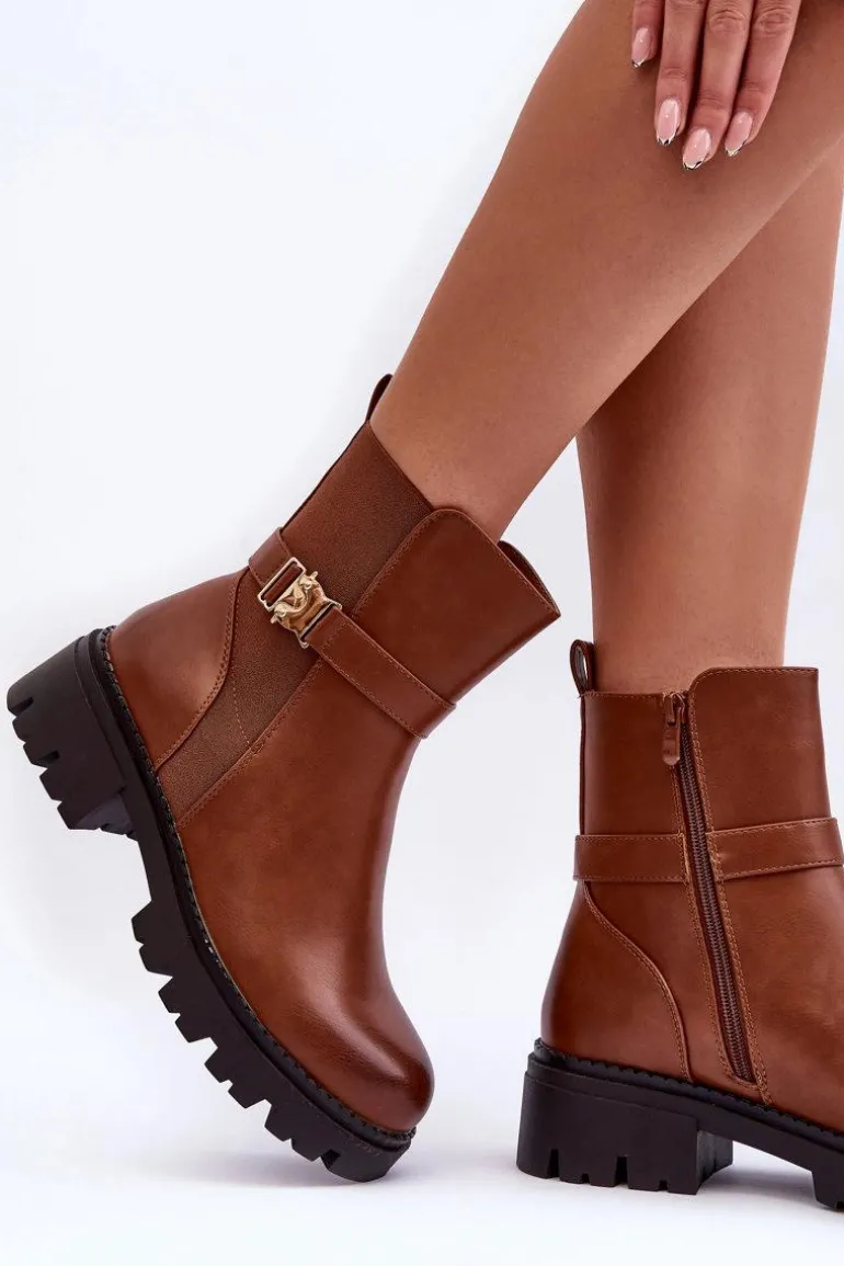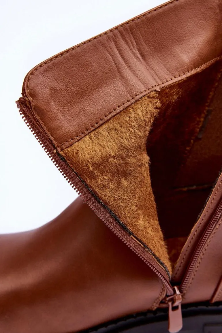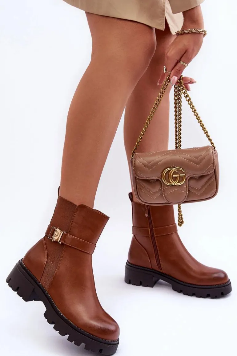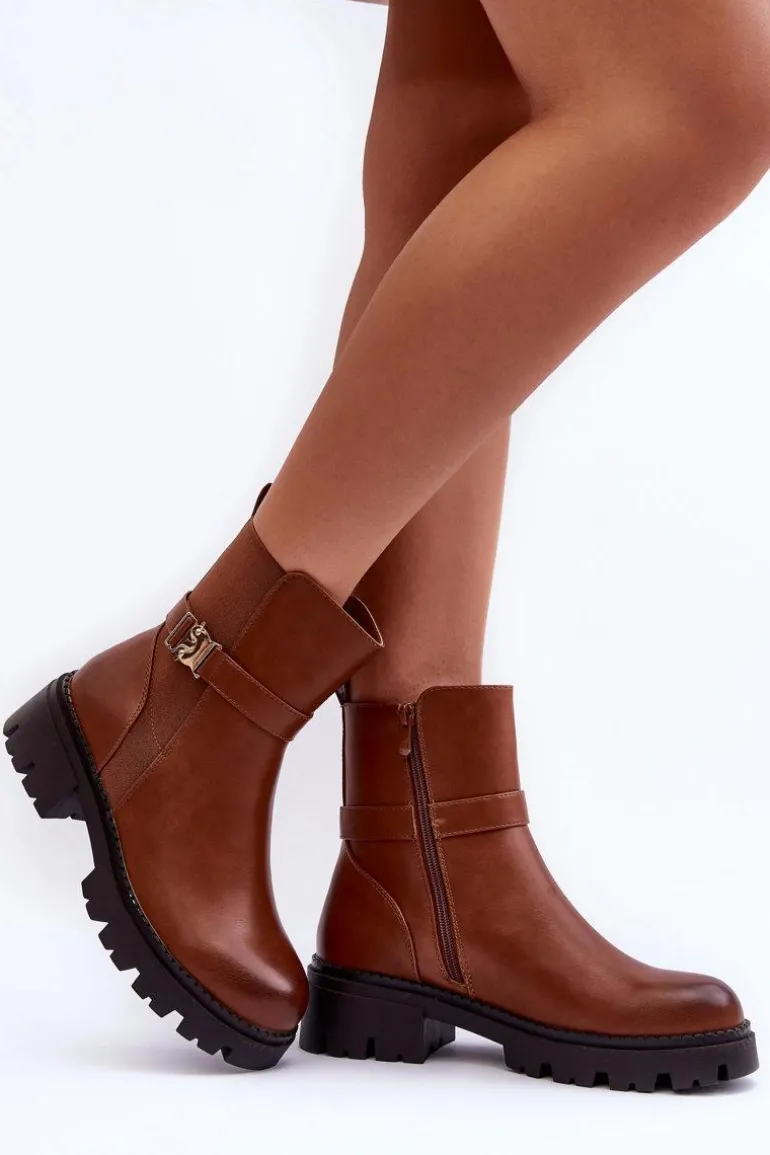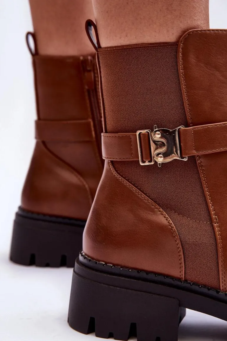 Klasyczne damskie sztyblety zostały wykonane z eko skóry. Zapinane na suwak z boku buta. Wewnątrz ocieplone kocem obuwniczym. Na cholewce znajduje się pasek z ozdobą. Model ten osadzony jest masywnej platformie i płaskim obcasie. Zapiętek jest usztywniony. Buty te świetnie sprawdzą się w sezonie wiosenno-jesiennym. Przy wyborze rozmiaru prosimy sugerować się tabelą rozmiarów.