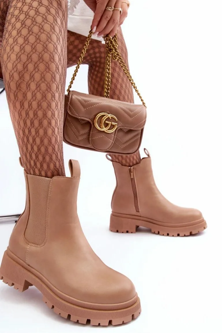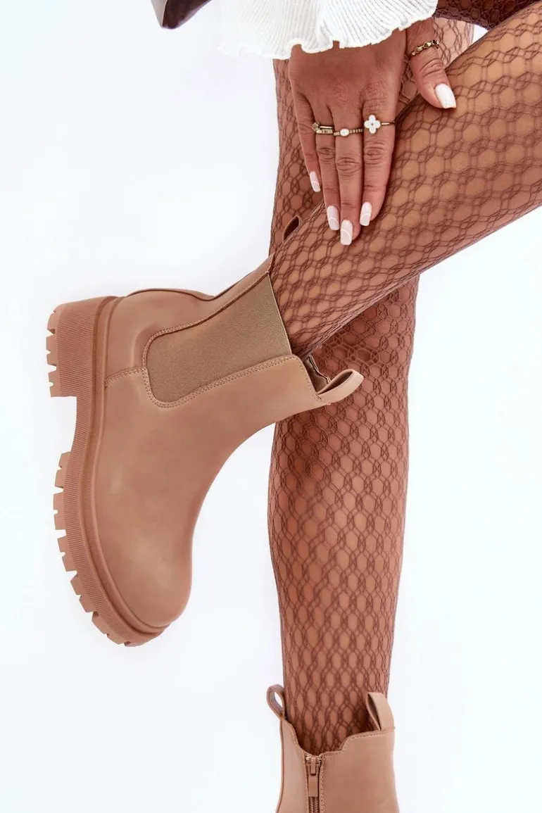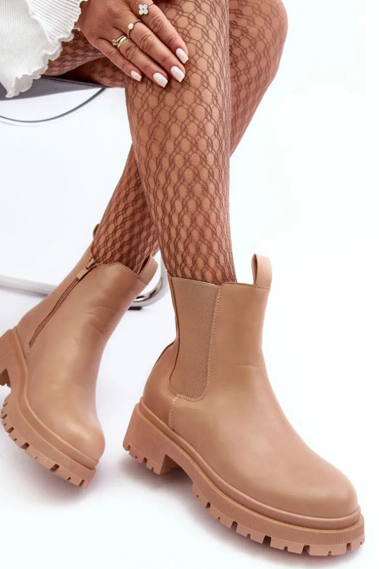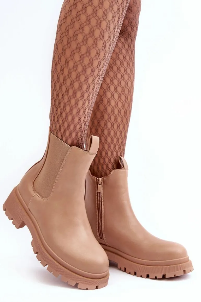Skórzane Botki Sztyblety Na Suwak Ciemnobeżowe Pitrese