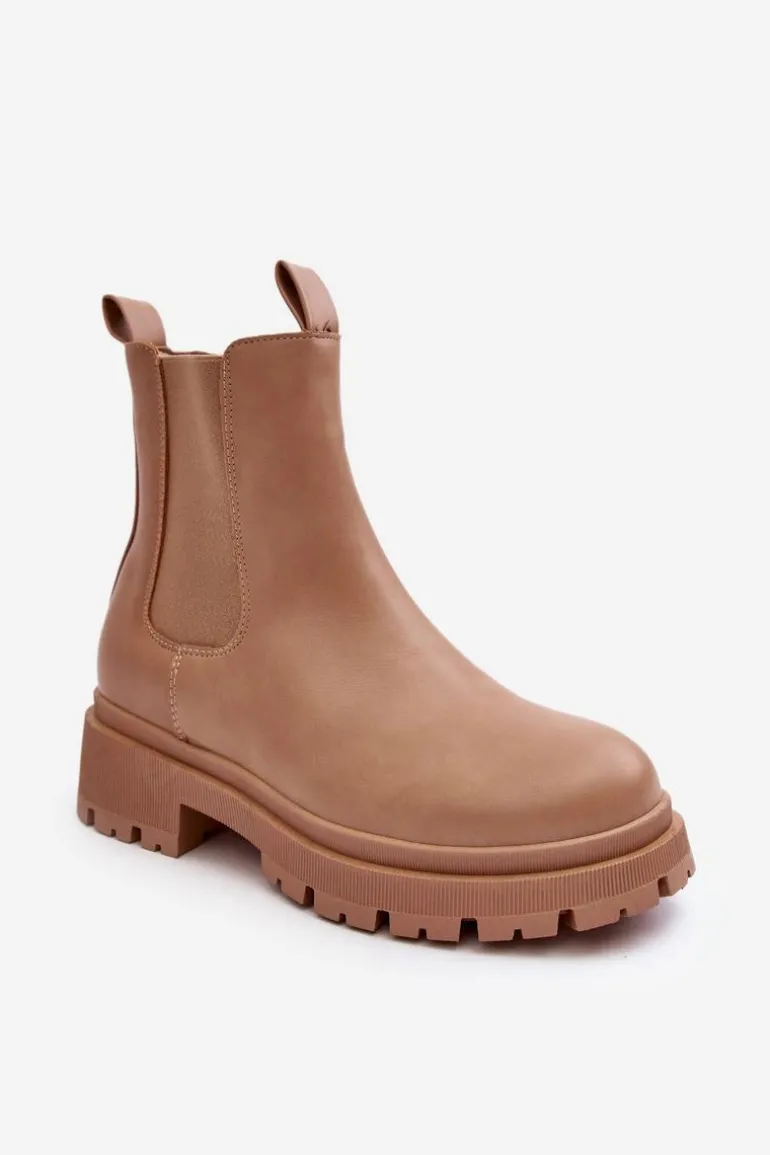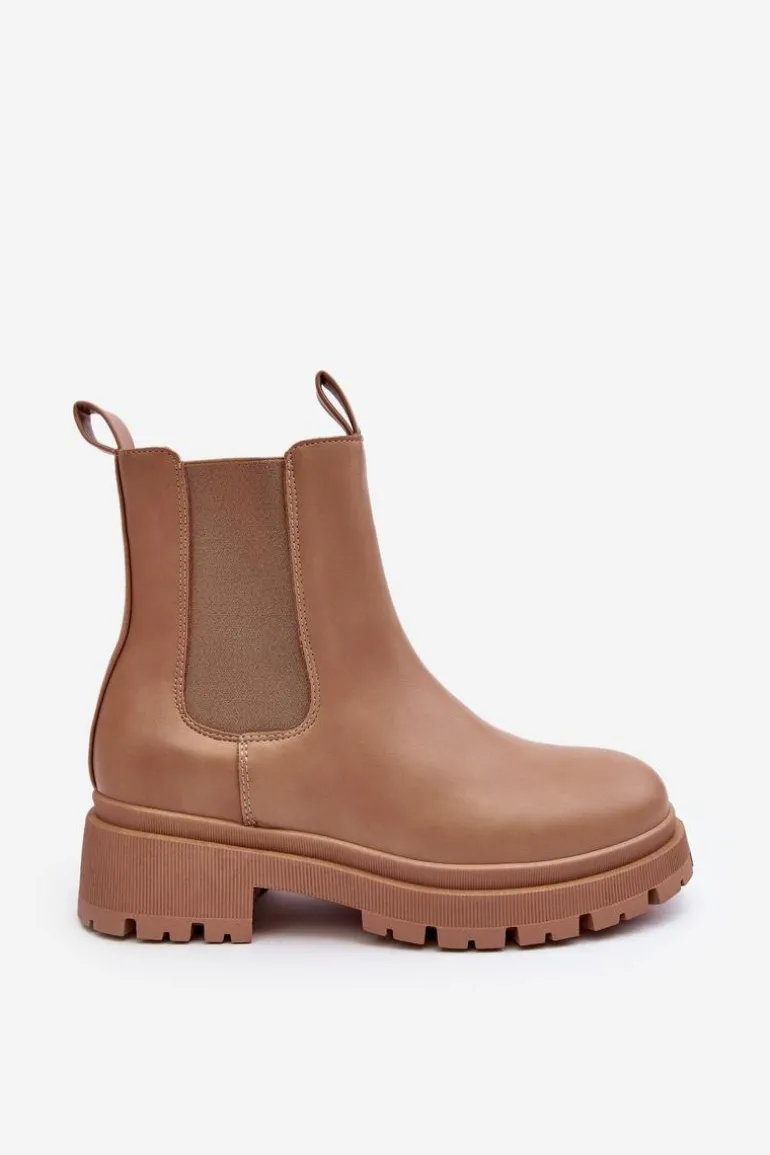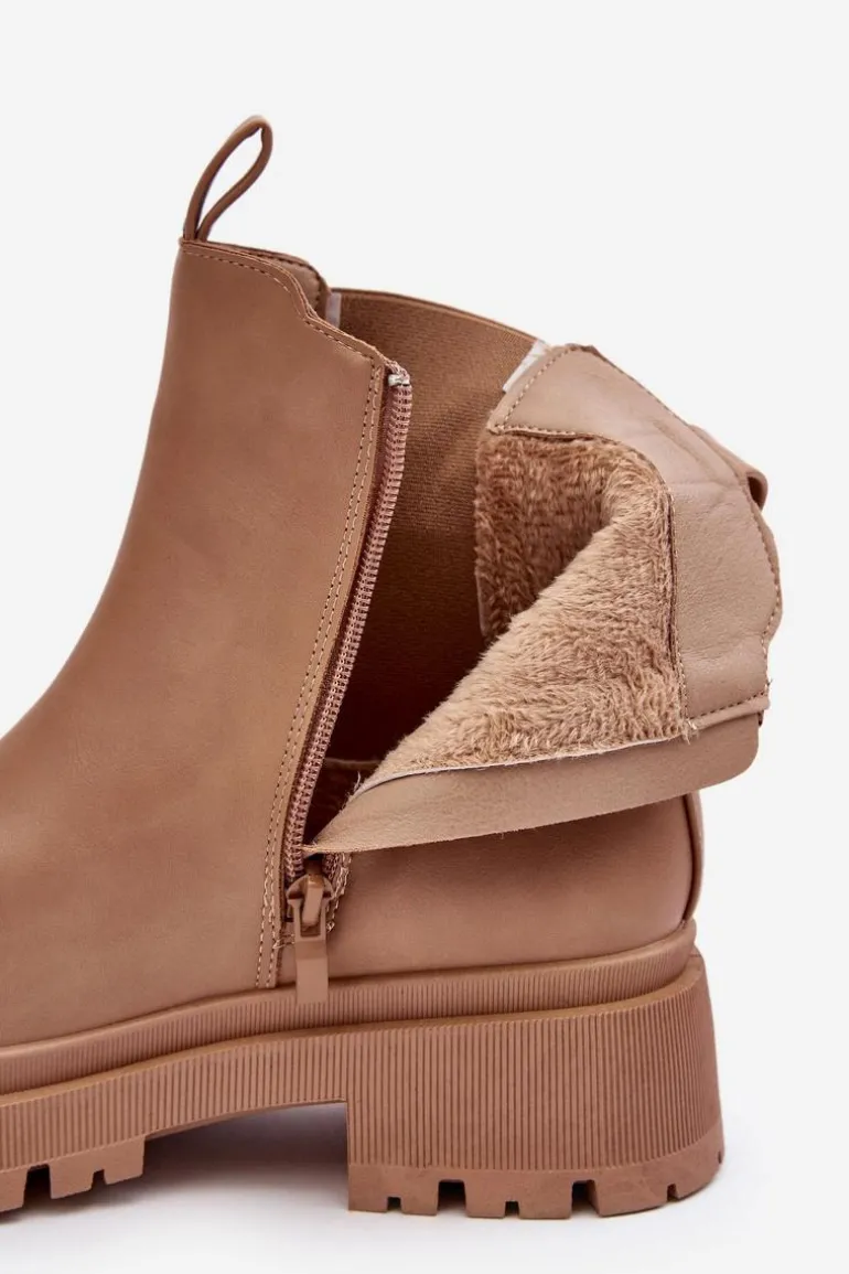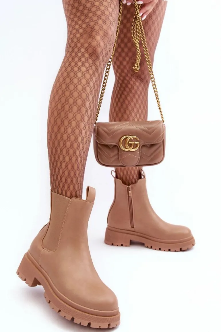 Skórzane Botki Sztyblety Na Suwak Ciemnobeżowe Pitrese