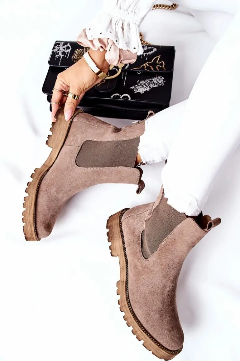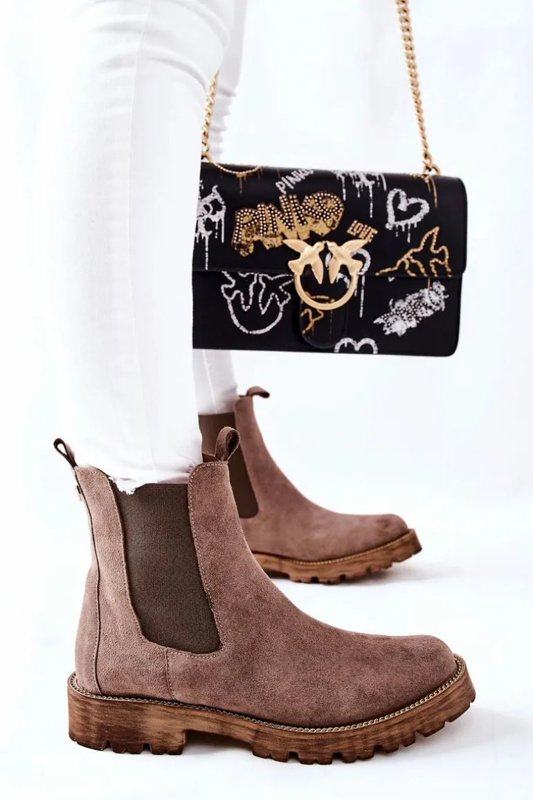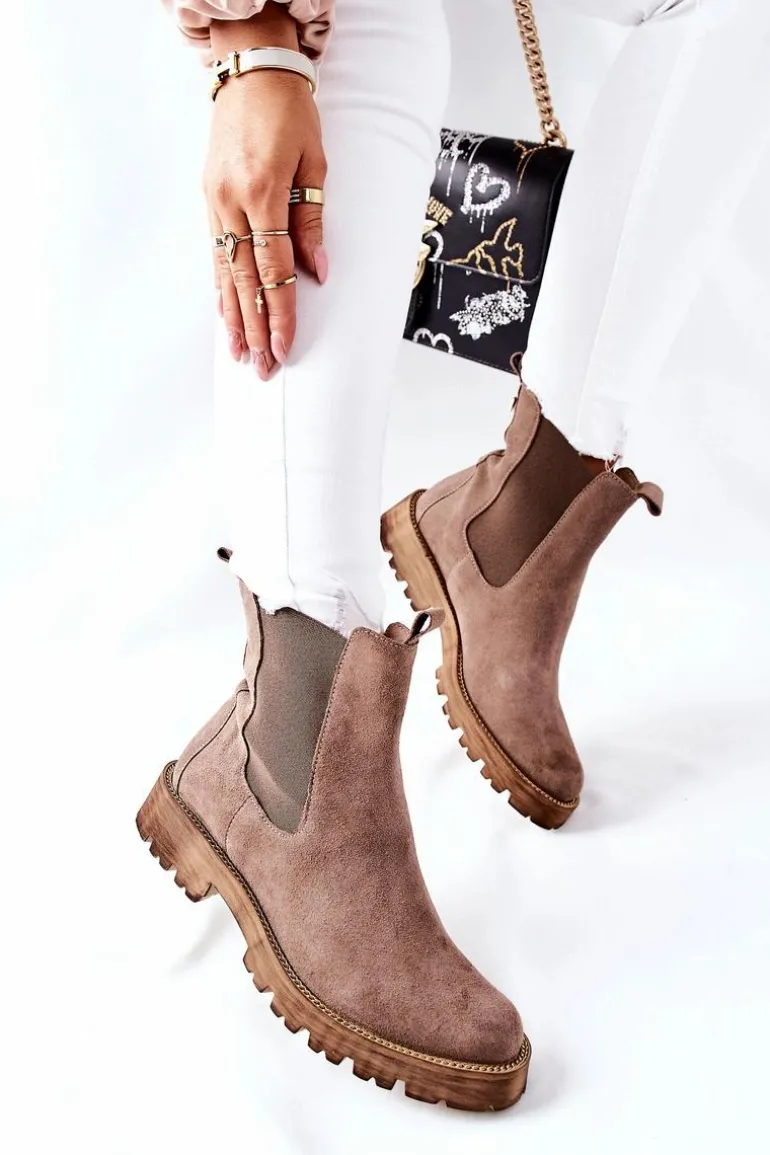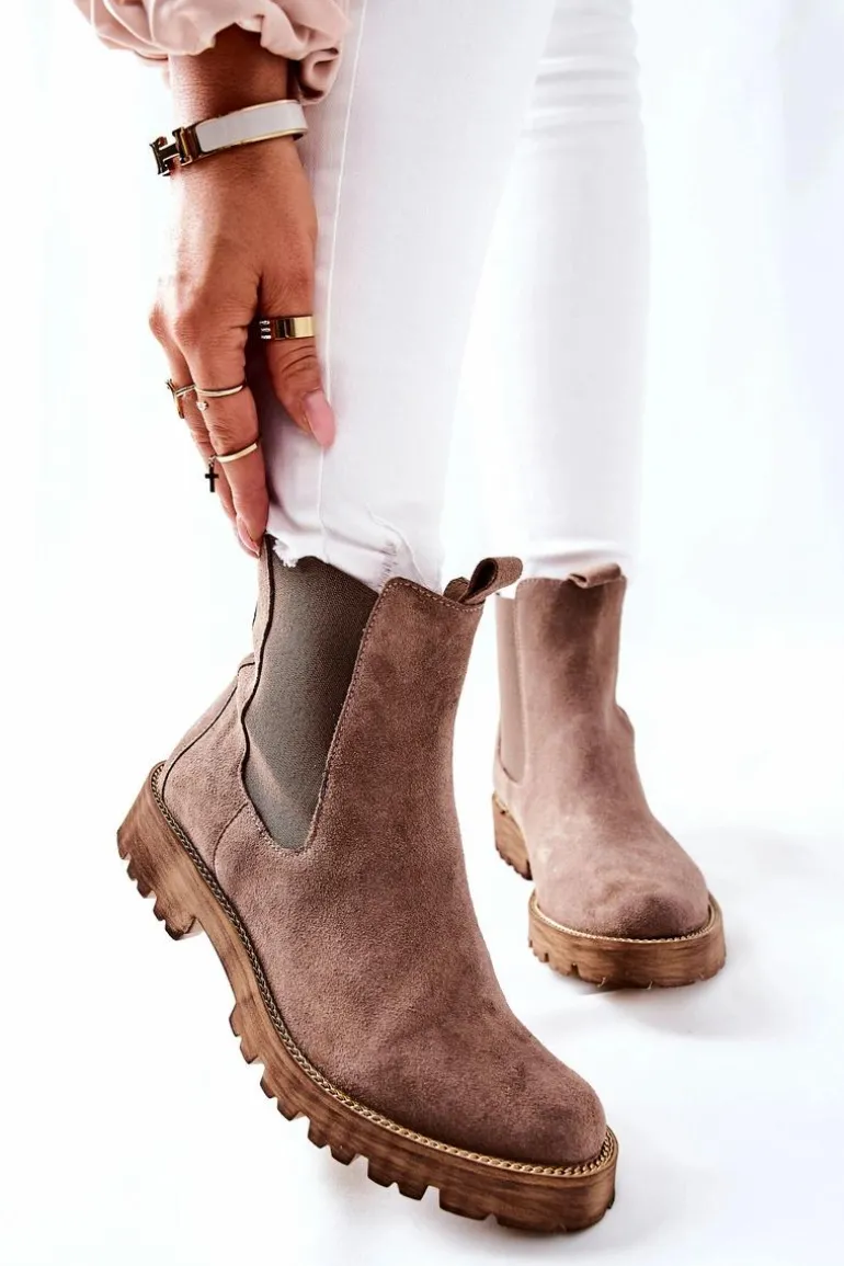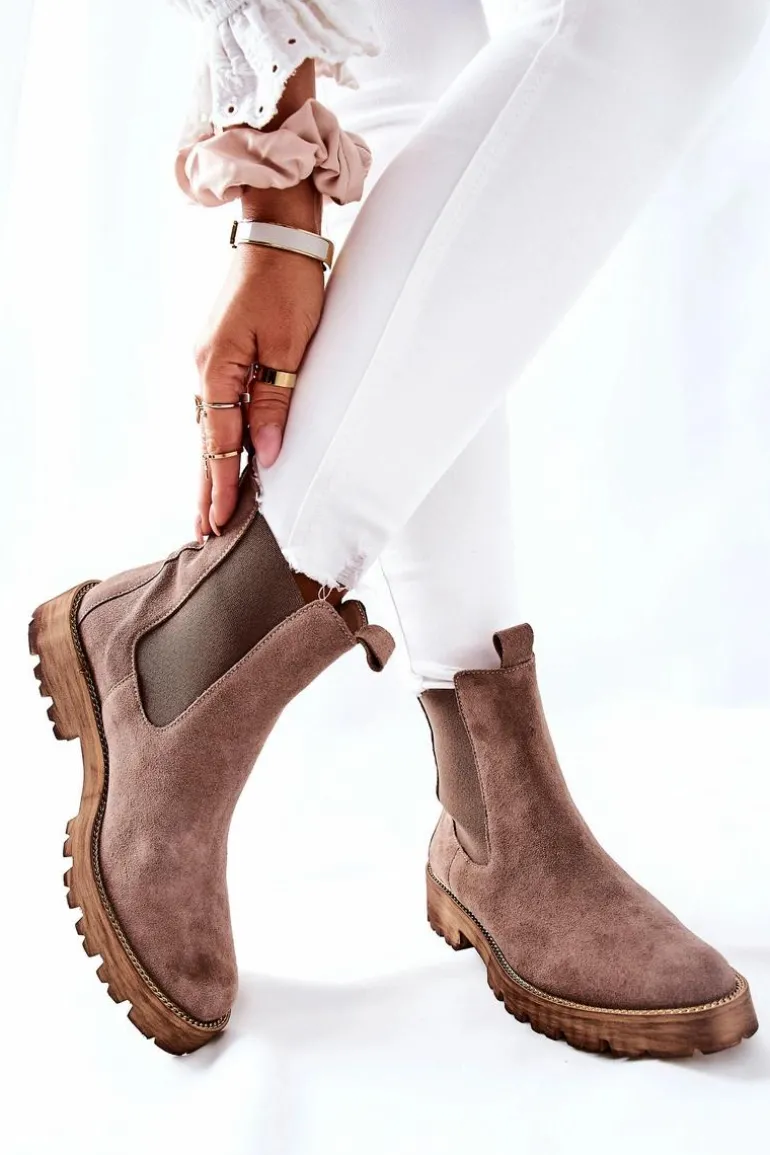 Damskie botki firmy Nicole, wykonane w całości ze skóry naturalnej. Przyjemny i wygodny zamsz zapewni wyjątkowy komfort, a wszyste gumy w cholewce ułatwią zakładanie. Miękka, antypoślizgowa podeszwa. Przy wyborze rozmiaru prosimy sugerować się tabelą rozmiarów.