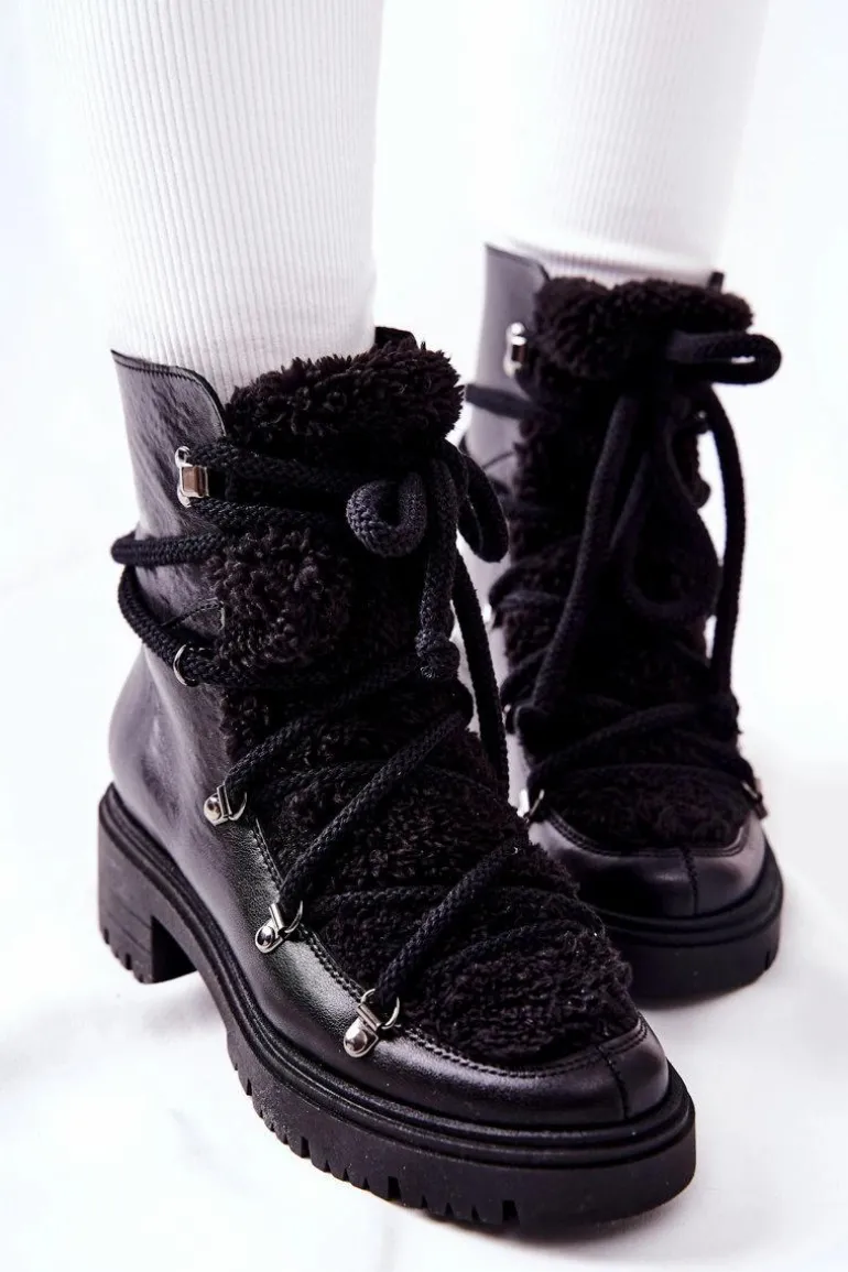 Ten model wprawia w zachwyt każdego, kto uwielbia wyróżniać się z tłumu! Ocieplany język botków, który został wykonany z przyjemnego w dotyku kożuszka sprawia, że trapery są niezwykle wyjątkowe! Zostały wykonane z naturalnej licowej skóry. Wkładka jest także skórzana. Posiadają wiązanie, które można dopasować do tęgości nogi. Buty osadzone są na płaskim obcasie i delikatnej platformie. Koniecznie musisz je mieć! Przy wyborze rozmiaru prosimy sugerować się tabelą rozmiarów.