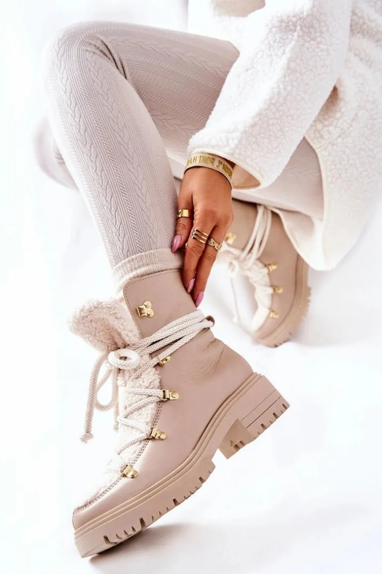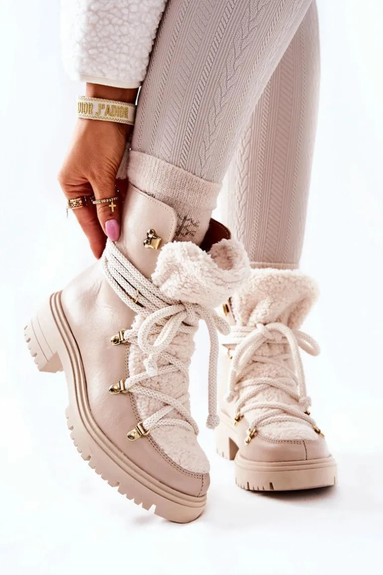 Ten model wprawia w zachwyt każdego, kto uwielbia wyróżniać się z tłumu! Ocieplany język botków, który został wykonany z przyjemnego w dotyku kożuszka sprawia, że trapery są niezwykle wyjątkowe! Zostały wykonane z naturalnej licowej skóry. Wkładka jest także skórzana. Posiadają wiązanie, które można dopasować do tęgości nogi. Buty osadzone są na płaskim obcasie i delikatnej platformie. Koniecznie musisz je mieć! Przy wyborze rozmiaru prosimy sugerować się tabelą rozmiarów.