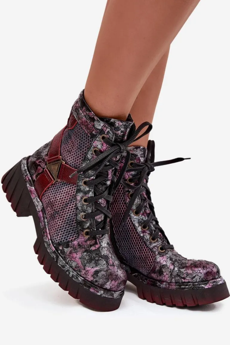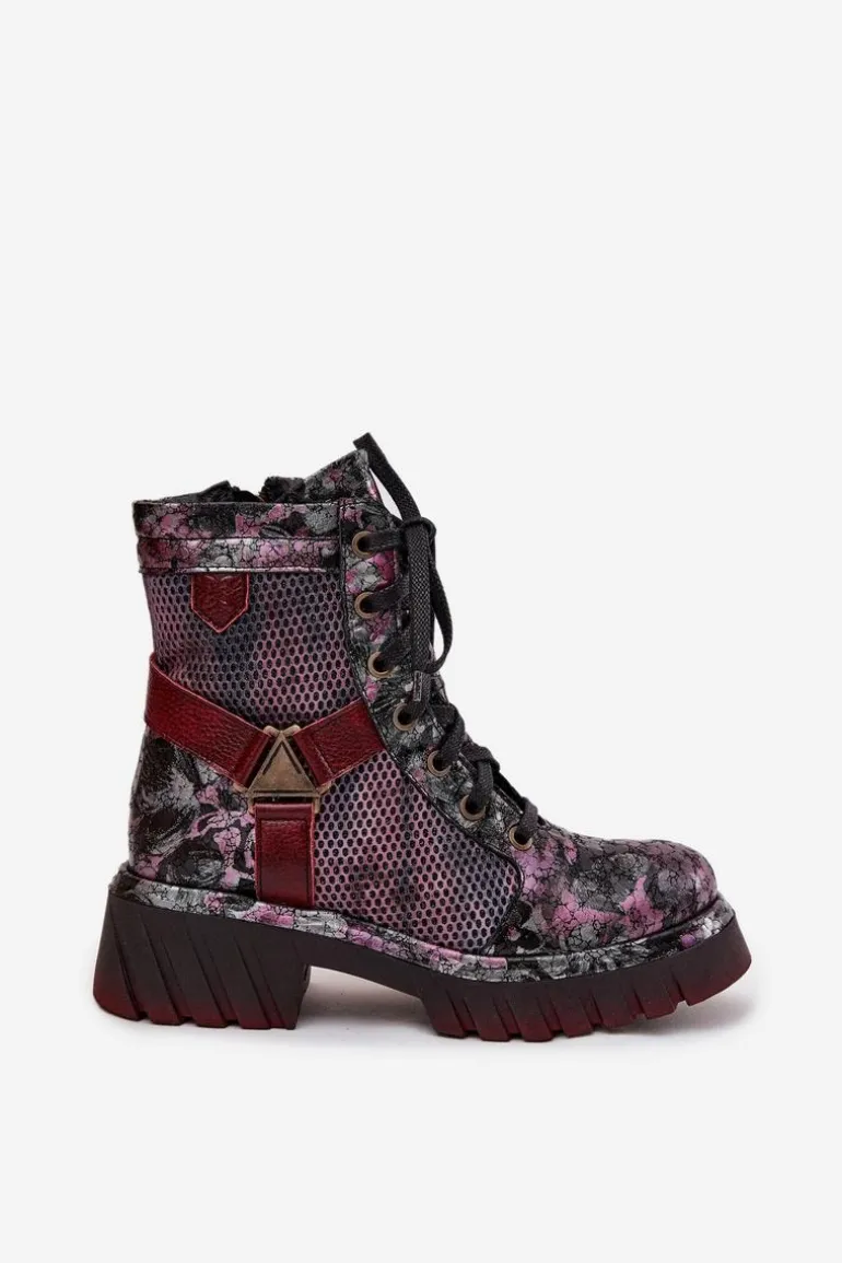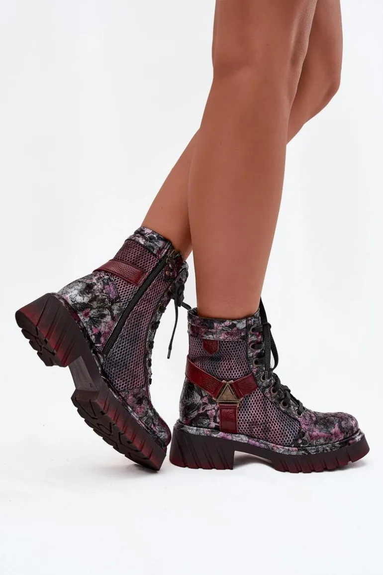 Botki workery damskie marki Maciejka to propozycja dla kobiet, które lubią oryginalny styl i wygodę. Wykonane z naturalnej skóry, wyróżniają się trwałością oraz wyjątkowym wyglądem, który przyciąga uwagę. Model osadzony został na platformie z płaskim obcasem, co zapewnia stabilność i komfort noszenia. Buty posiadają zarówno praktyczne sznurowanie, jak i zamek, dzięki czemu łatwo je dopasować do stopy i szybko zakładać. Na cholewce umieszczono paski połączone ozdobnym elementem, które dodają całości charakteru i nowoczesnego wyglądu. To botki, które świetnie sprawdzą się w codziennych stylizacjach, szczególnie dla kobiet ceniących odważne i stylowe akcenty.