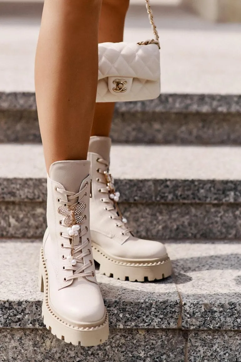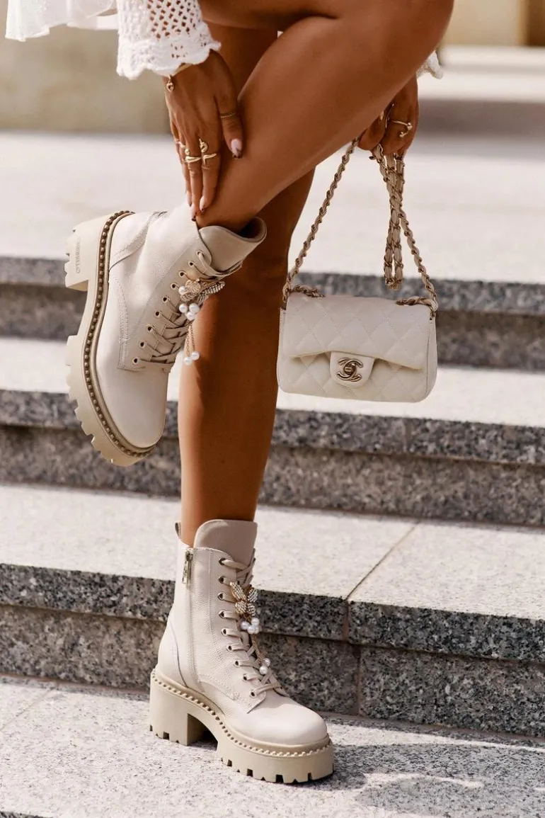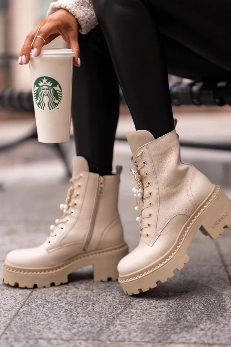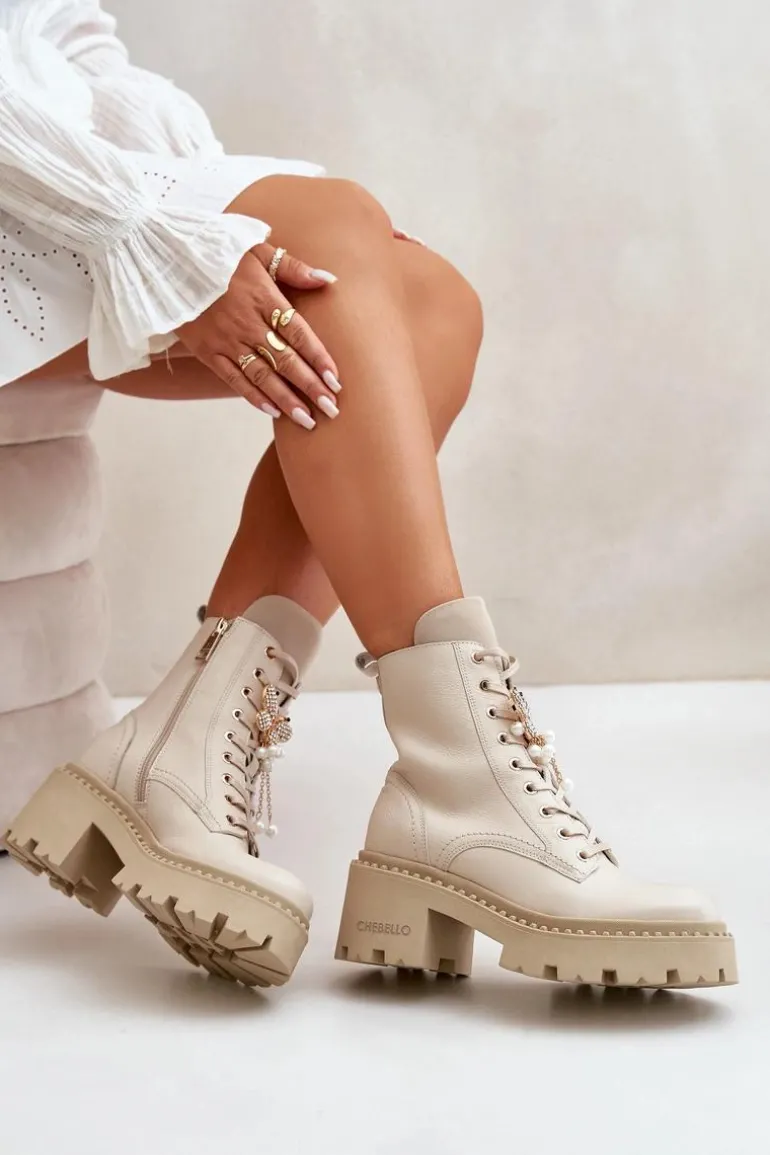Botki marki CheBello wykonane z wysokiej jakości skóry naturalnej. Wnętrze lekko ocieplone, co zapewnia komfort noszenia w chłodniejsze dni. Model ten wyróżnia się uroczą przypinką w postaci motyla z koralikami. Noski zaokrąglone. Koniecznie powinnaś je mieć w swojej jesienno-zimowej szafie! Przy wyborze rozmiaru prosimy sugerować się tabelą rozmiarów.