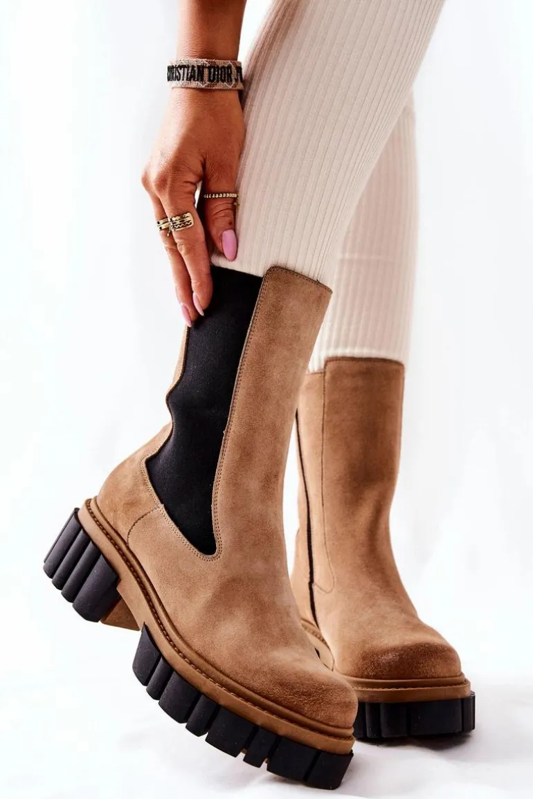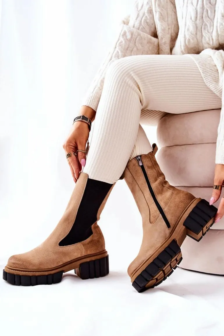 Skórzane Botki Workery Laura Messi Beżowe 2421