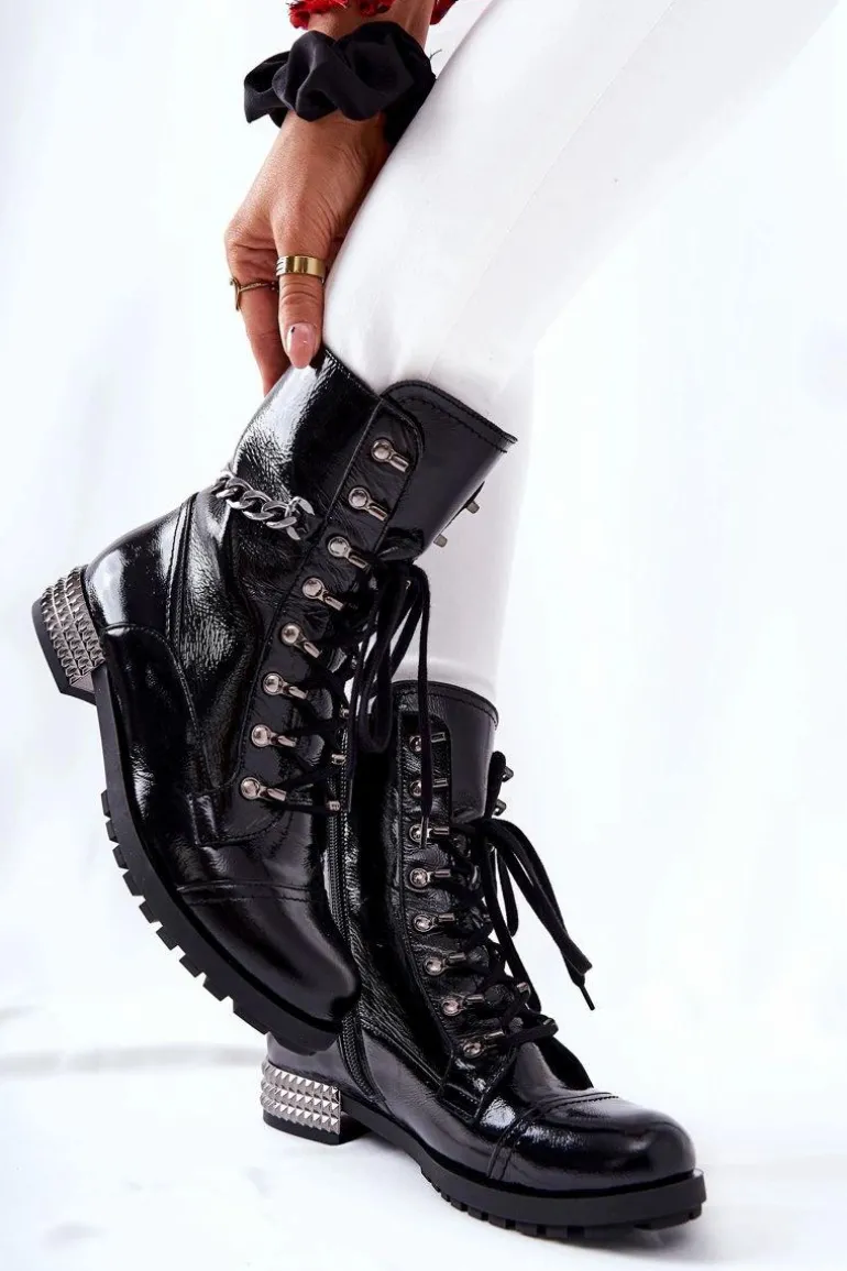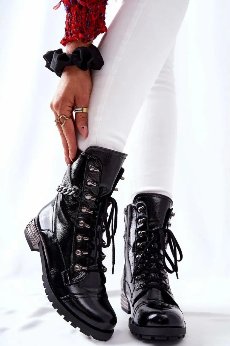 Skórzane Botki Workery Laura Messi Czarne 2209