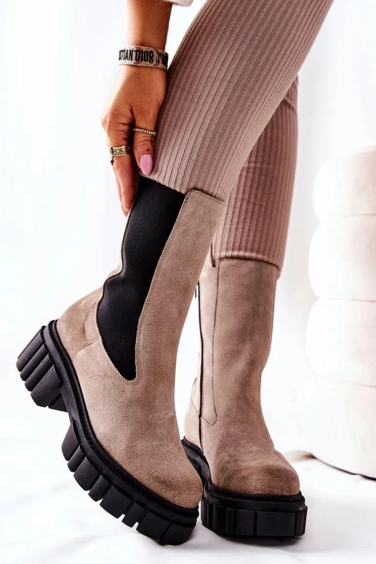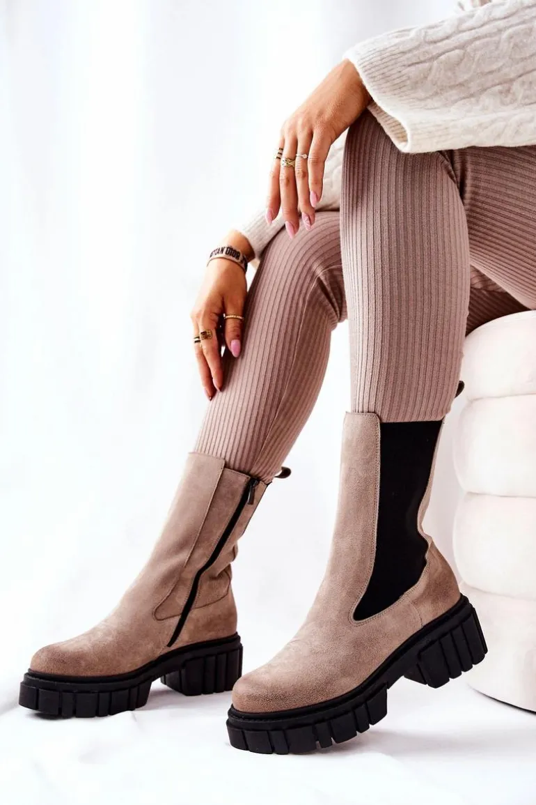 Skórzane Botki Workery Laura Messi Jasnobeżowe 2421