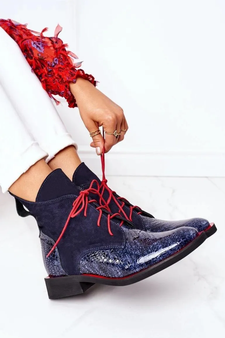 Wyjątkowe botki od polskiego producenta. Buty cechuje wysoka jakość wykonania oraz dbałość o detale. Botki wykonano ręcznie z lakierowanej skóry naturalnej oraz zamszu Skórzana wkładka, oraz wygodny obcas zapewnią maksymalny komfort! Dzięki pięknie zdobionej cholewce buty wzbogacą wszystkie Twoje stylizacje. Przy wyborze rozmiaru prosimy sugerować się tabelą rozmiarów.