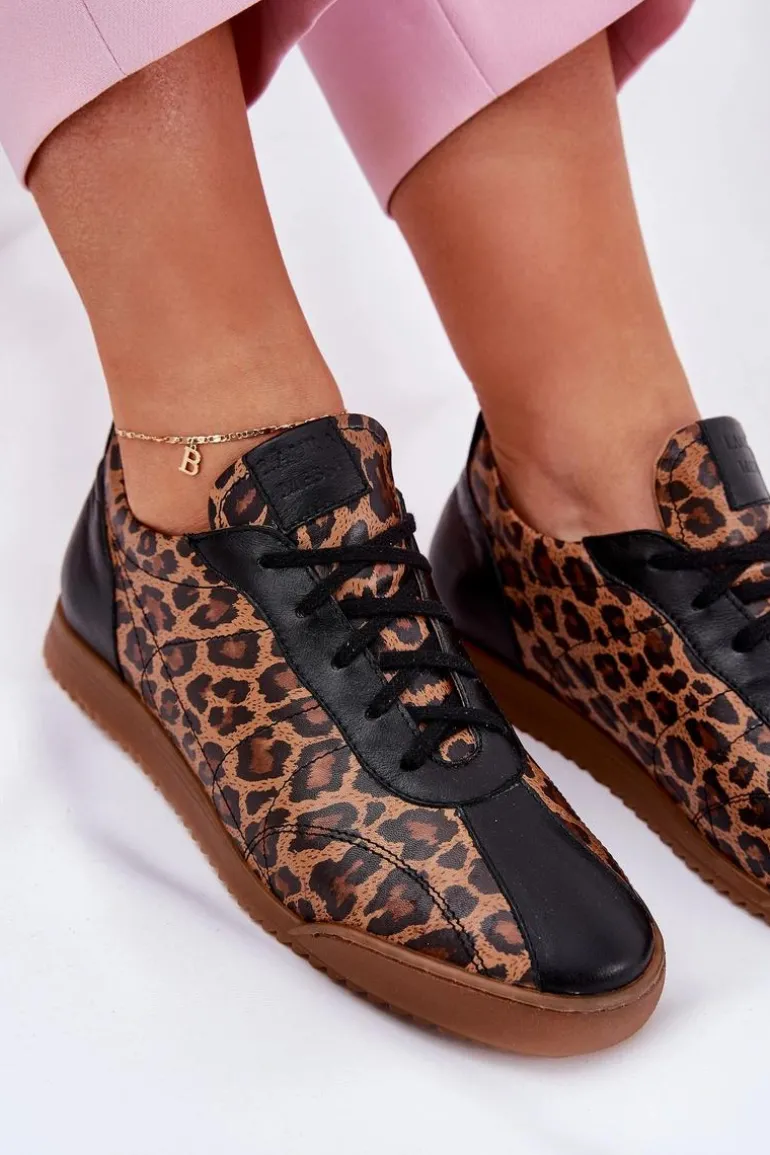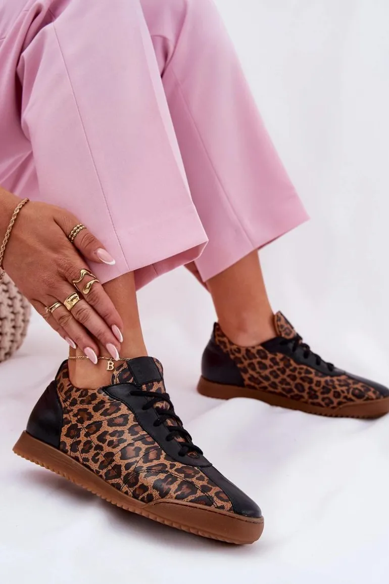 Skórzane Buty Sportowe Damskie W Panterkę Laura Messi 2935 Brązowe