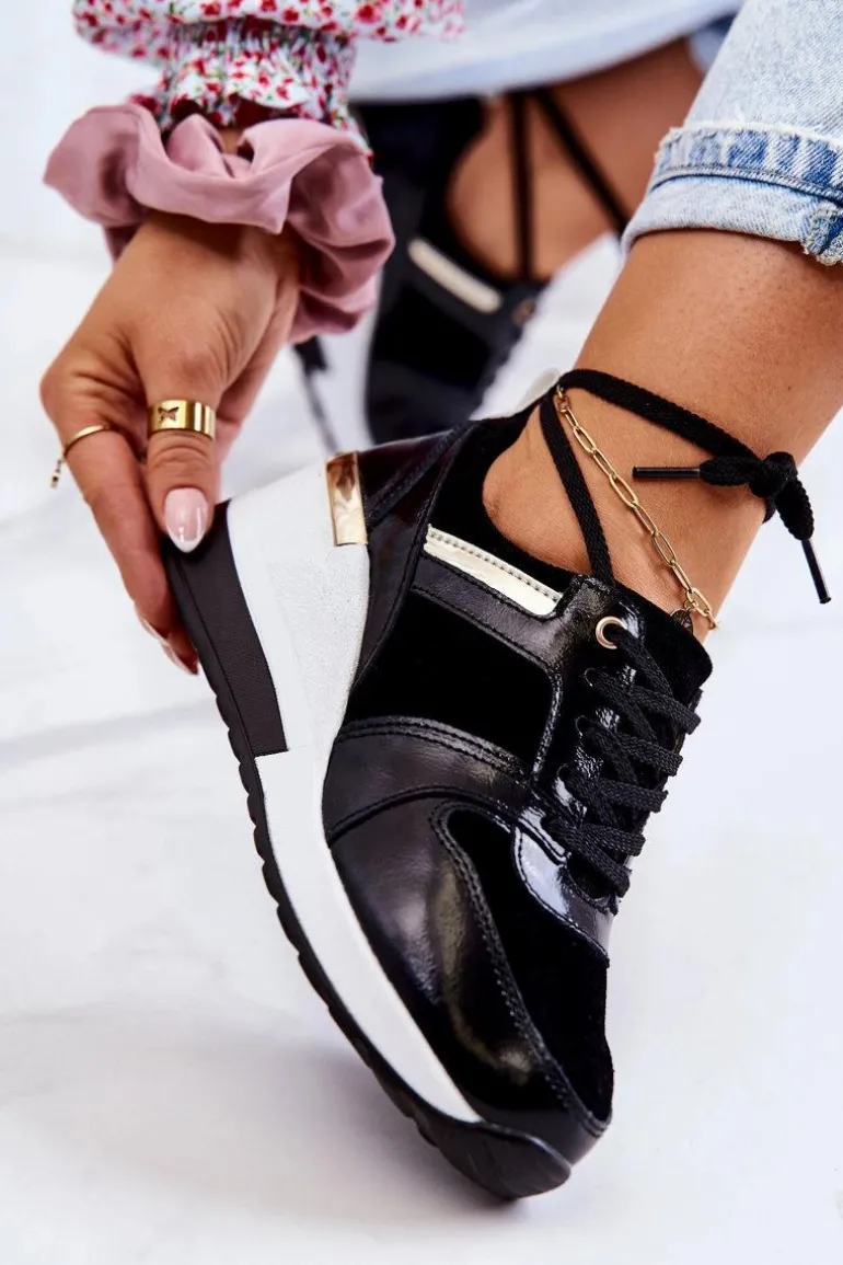 Skórzane Buty Sportowe Na Koturnie Czarno-Białe Rayana