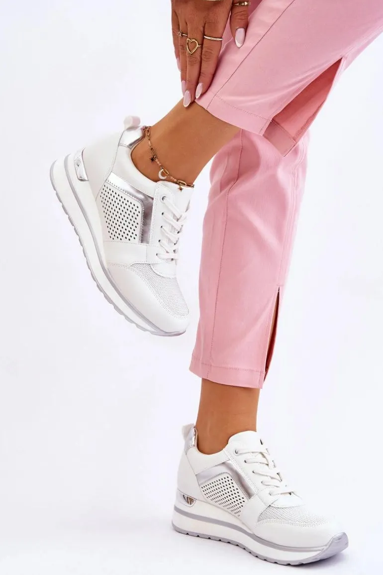 Skórzane Buty Sportowe Na Niewysokim Koturnie Białe Braylen