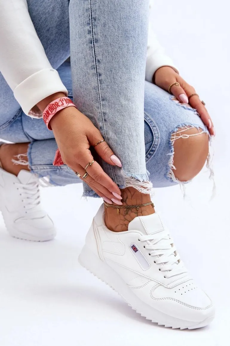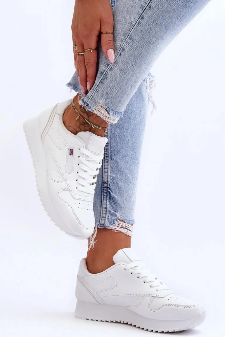 Skórzane Buty Sportowe Sznurowane Na Platformie Białe Merida