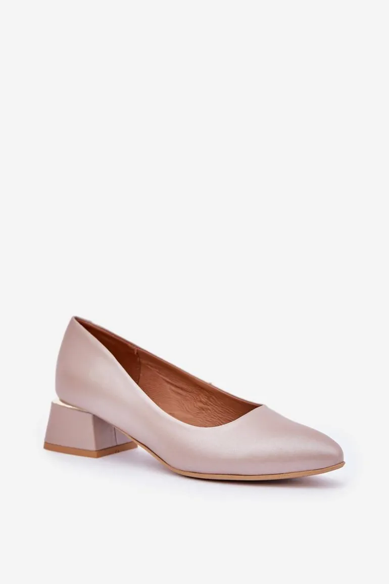 Skórzane Czółenka Lewski 3118 Ciemnobeżowe
