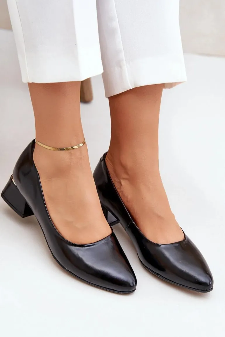 Buty zostały wykonane z wysokogatunkowej skóry naturalnej. Posiadają miękką, skórzaną wkładkę. Eleganckie czółenka pasują na wiele okazji. Obcas wykończony ozdobnym elementem. Bardzo wygodny model. Dzięki stabilnemu obcasowi są bardzo komfortowe w noszeniu przez wiele godzin. Sprawdź także inne modele czółenek! Przy wyborze rozmiaru prosimy sugerować się tabelą rozmiarów.