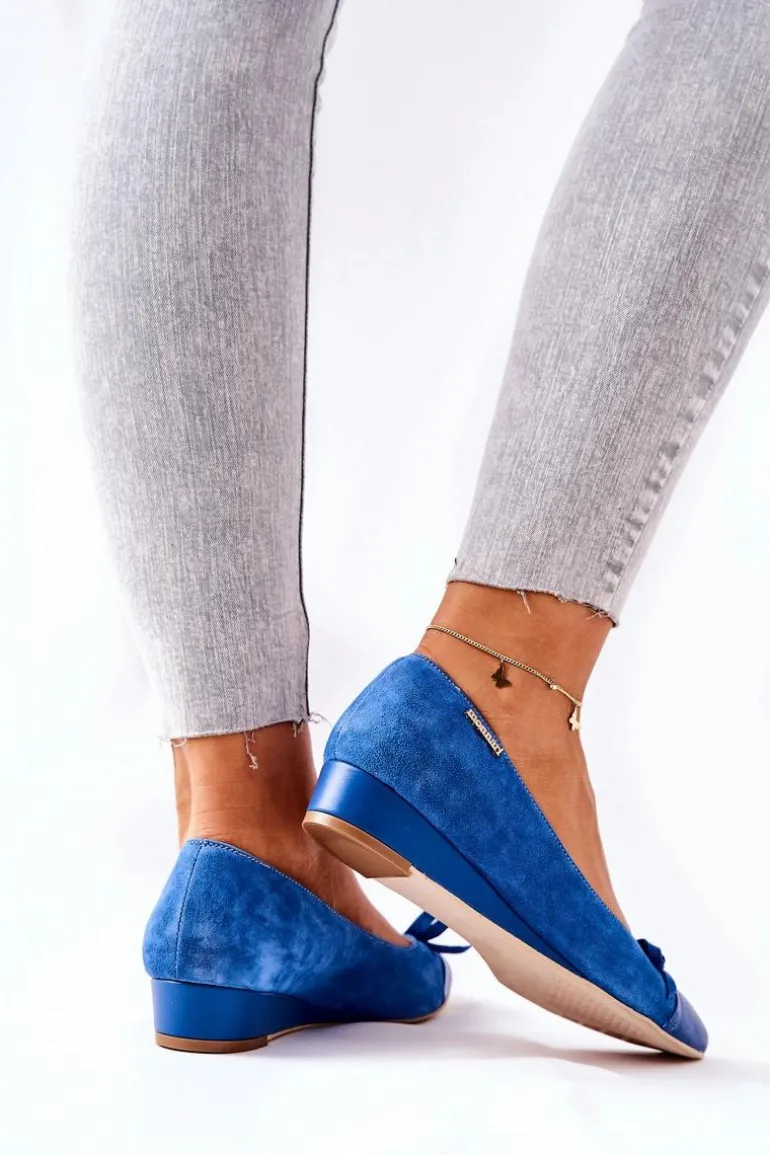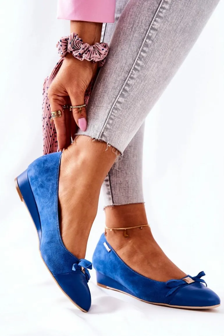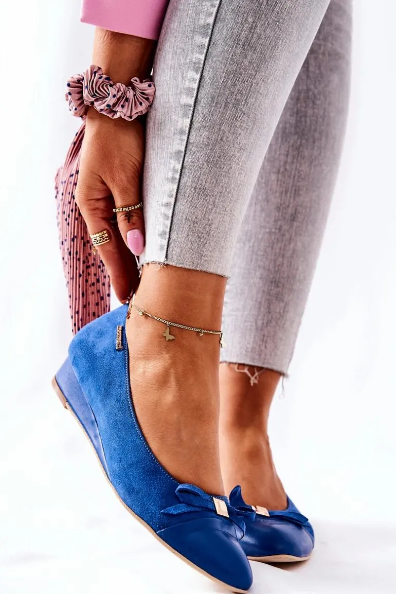 Czółenka na koturnie? Właśnie tak! To połączenie klasyki, wygody oraz elegancji. Dopasujesz je do wielu stylizacji. Prezentowany model wykonany został z naturalnej skóry zamszowej, częściowo licowej. Posiadają z boku ozdobny element logo marki Monnari. Na przodzie znajduje się ozdobna kokardka. Wkładka skórzana, perforowana.Podczas wyboru rozmiaru prosimy sugerować się tabelą rozmiarów.